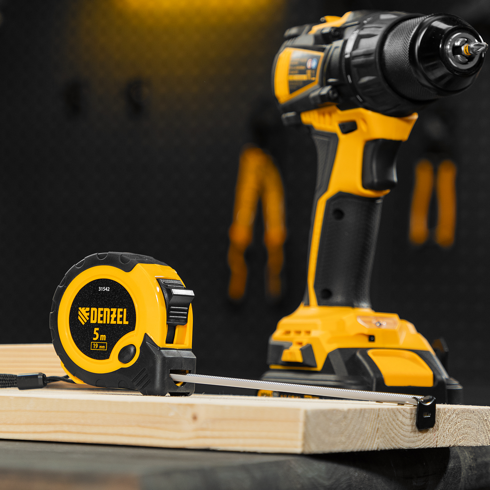 Рулетка 5м х 19мм, двухкомп. корпус, кнопка-пауза Denzel
