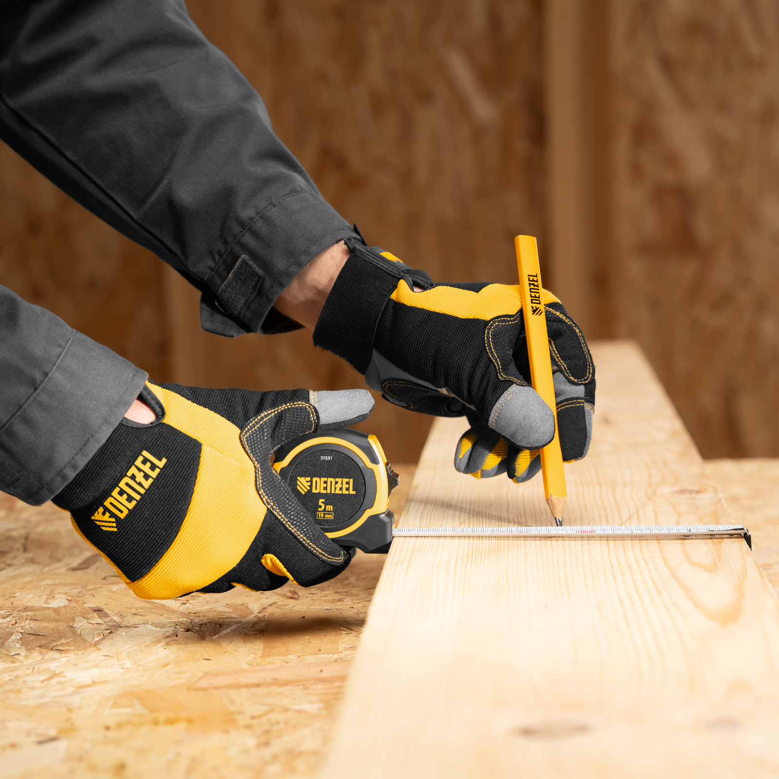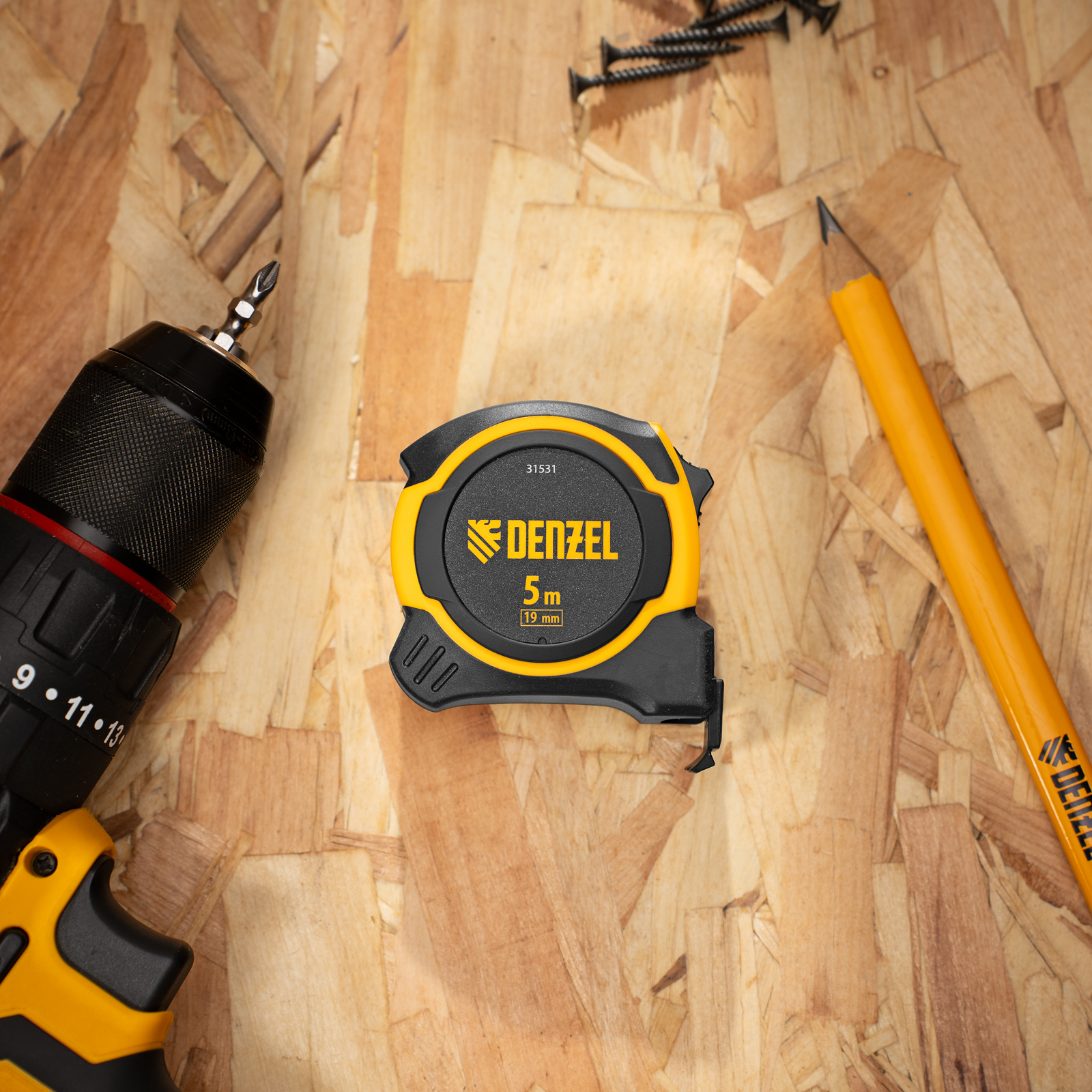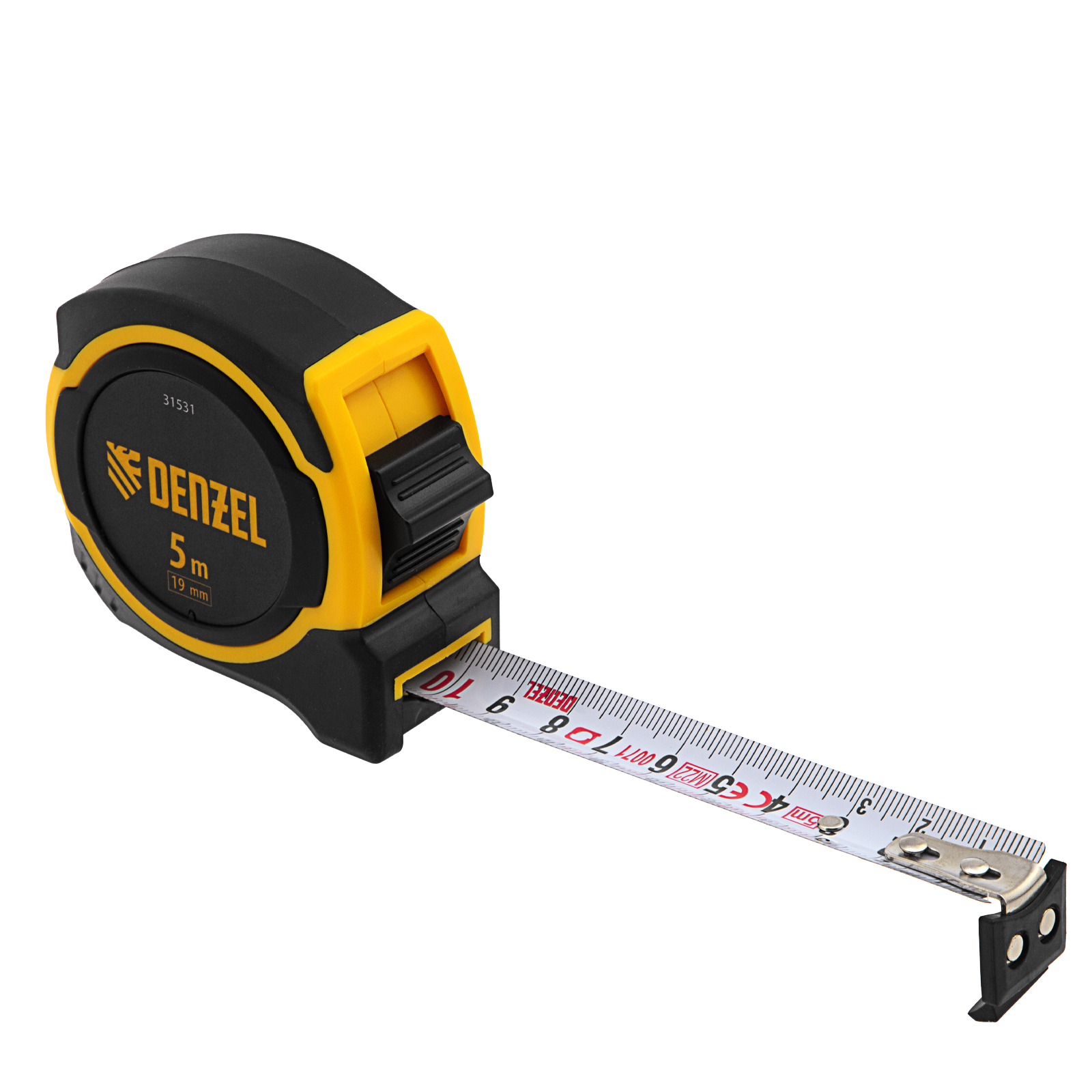 Рулетка 5м х 19мм, двухкомп. корпус, магнитный обрезиненный зацеп Denzel