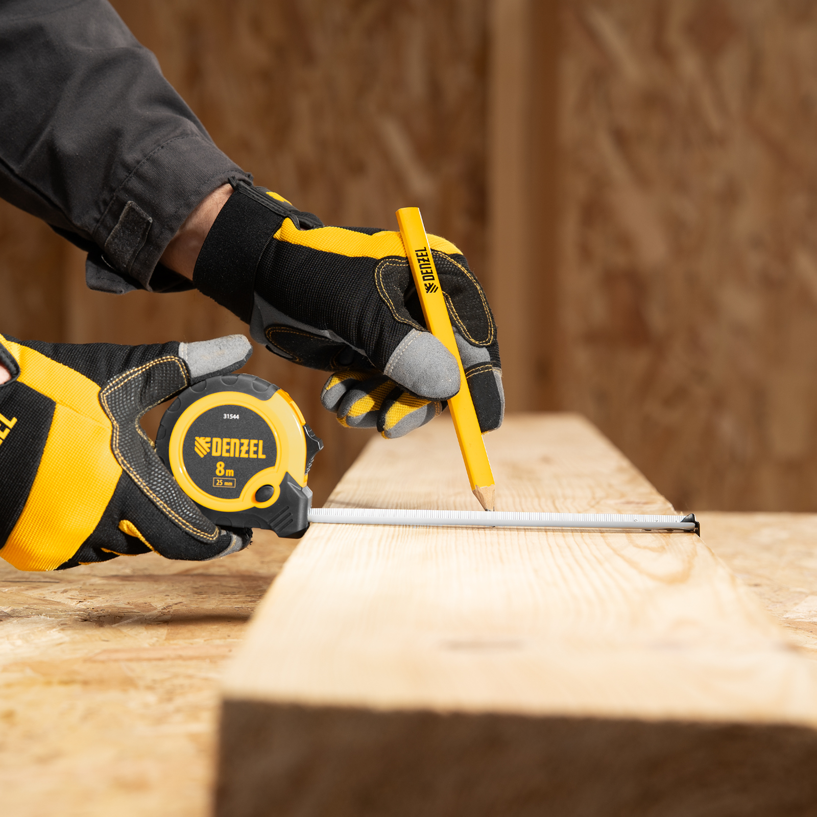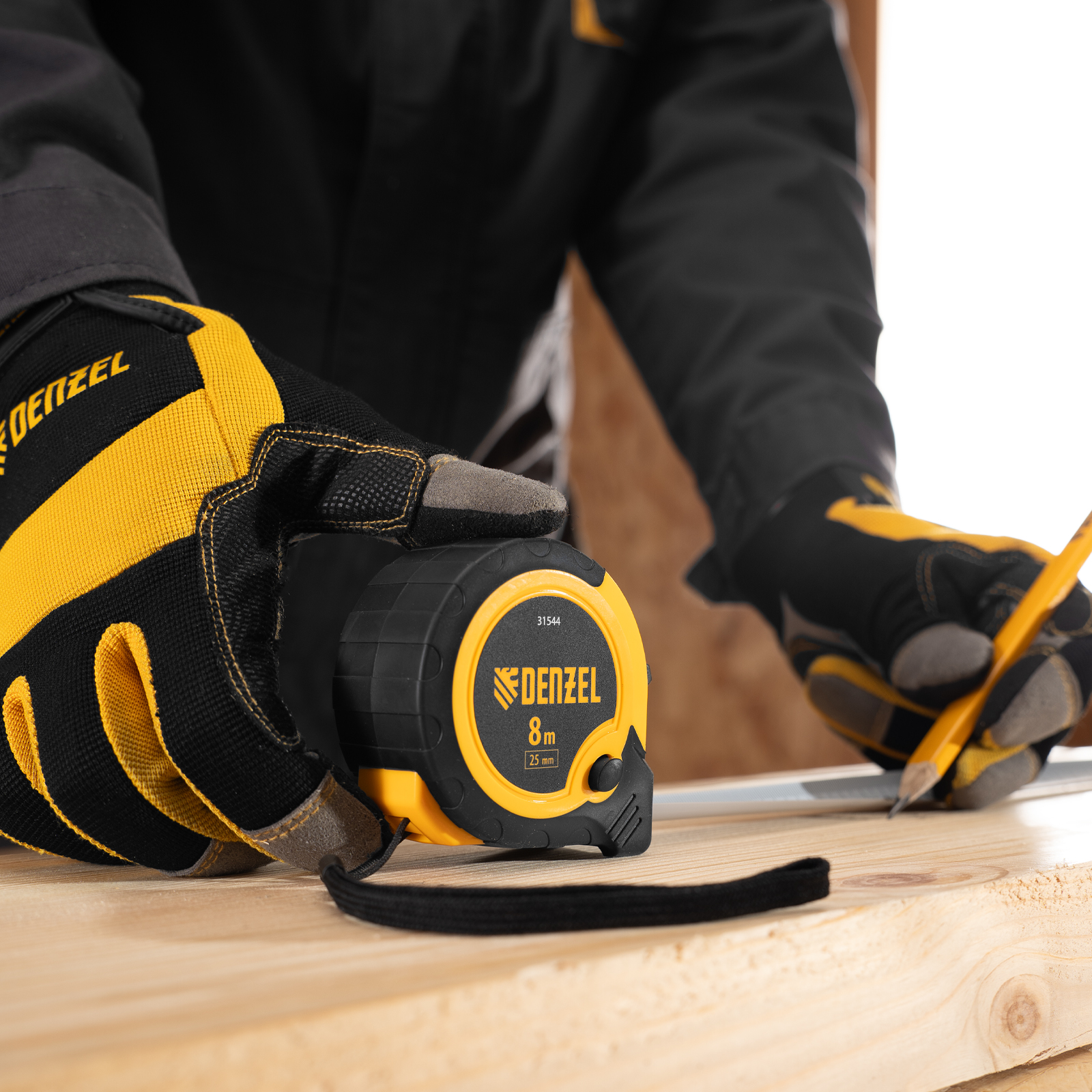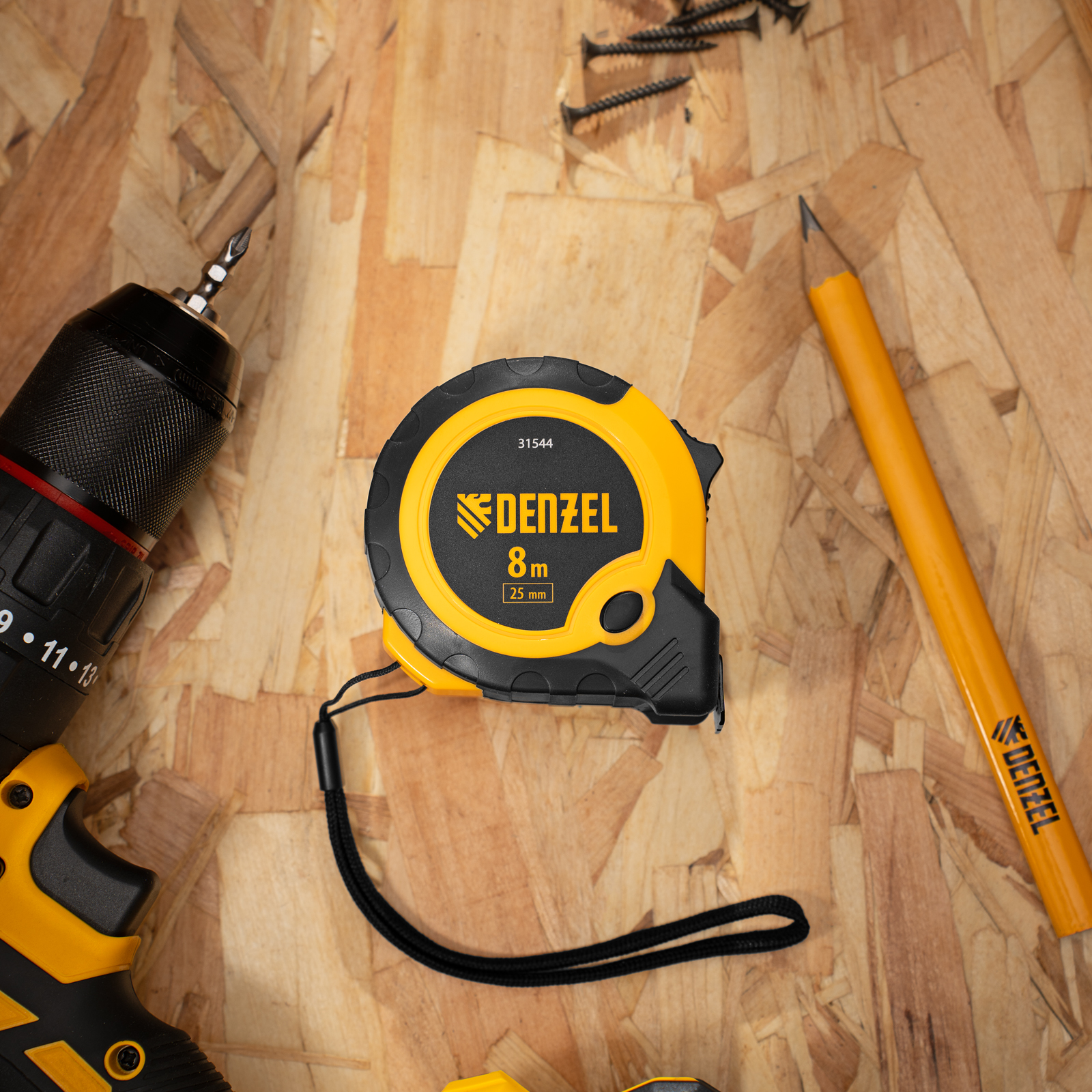 Рулетка 8м х 25мм, двухкомп. корпус, кнопка-пауза Denzel