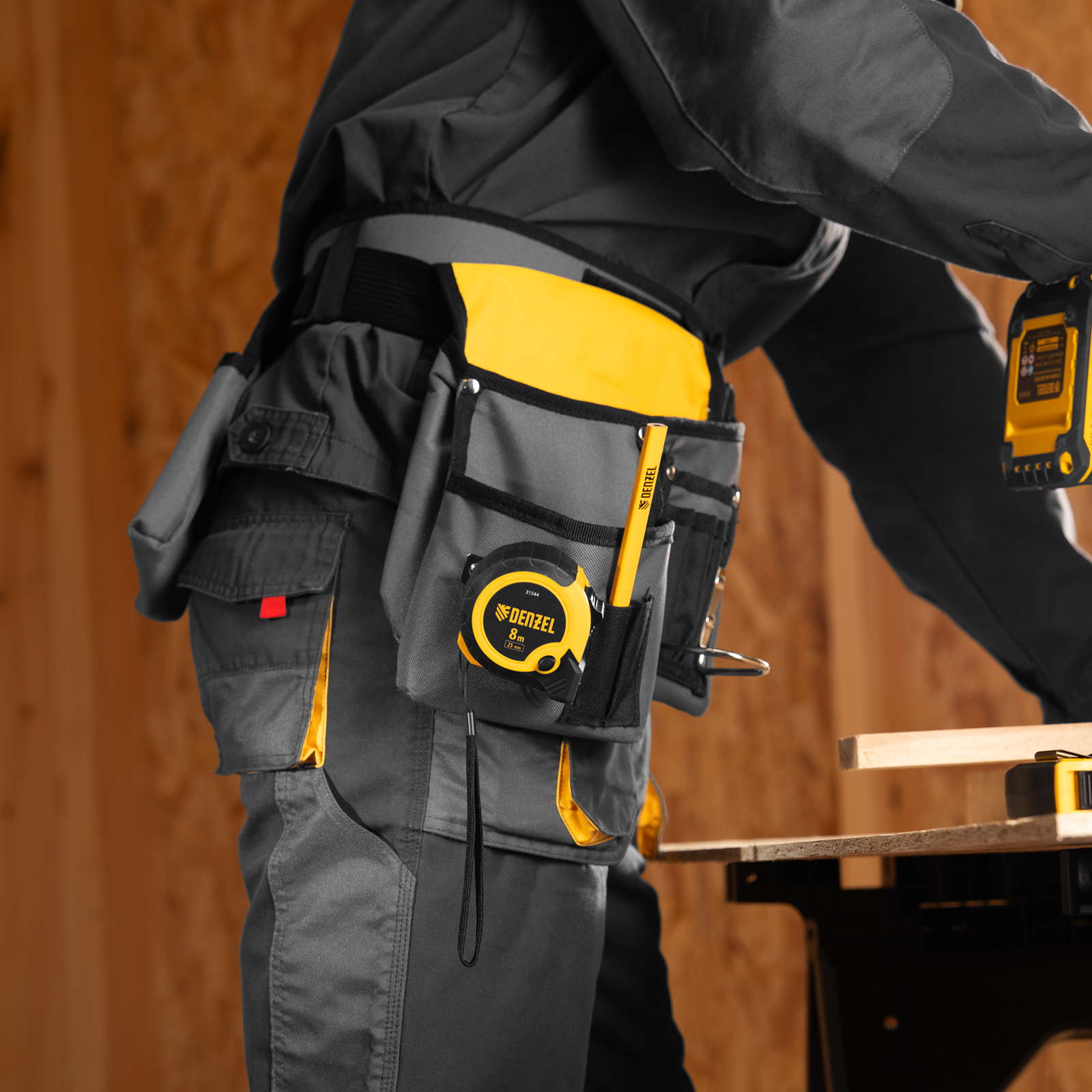 Рулетка Denzel 31544 в двухкомпонентном корпусе, с кнопкой-паузой, с полотном шириной 25 мм и длиной 8 м, используется для измерения расстояний и размеров предметов. Удобна для работы в труднодоступных местах. Стальная лента с эмалевым покрытием и защитной пластиной в месте крепления зацепа рассчитана на долгий срок службы. Рулетка будет полезна во время строительства и ремонта, а также пригодится в быту.