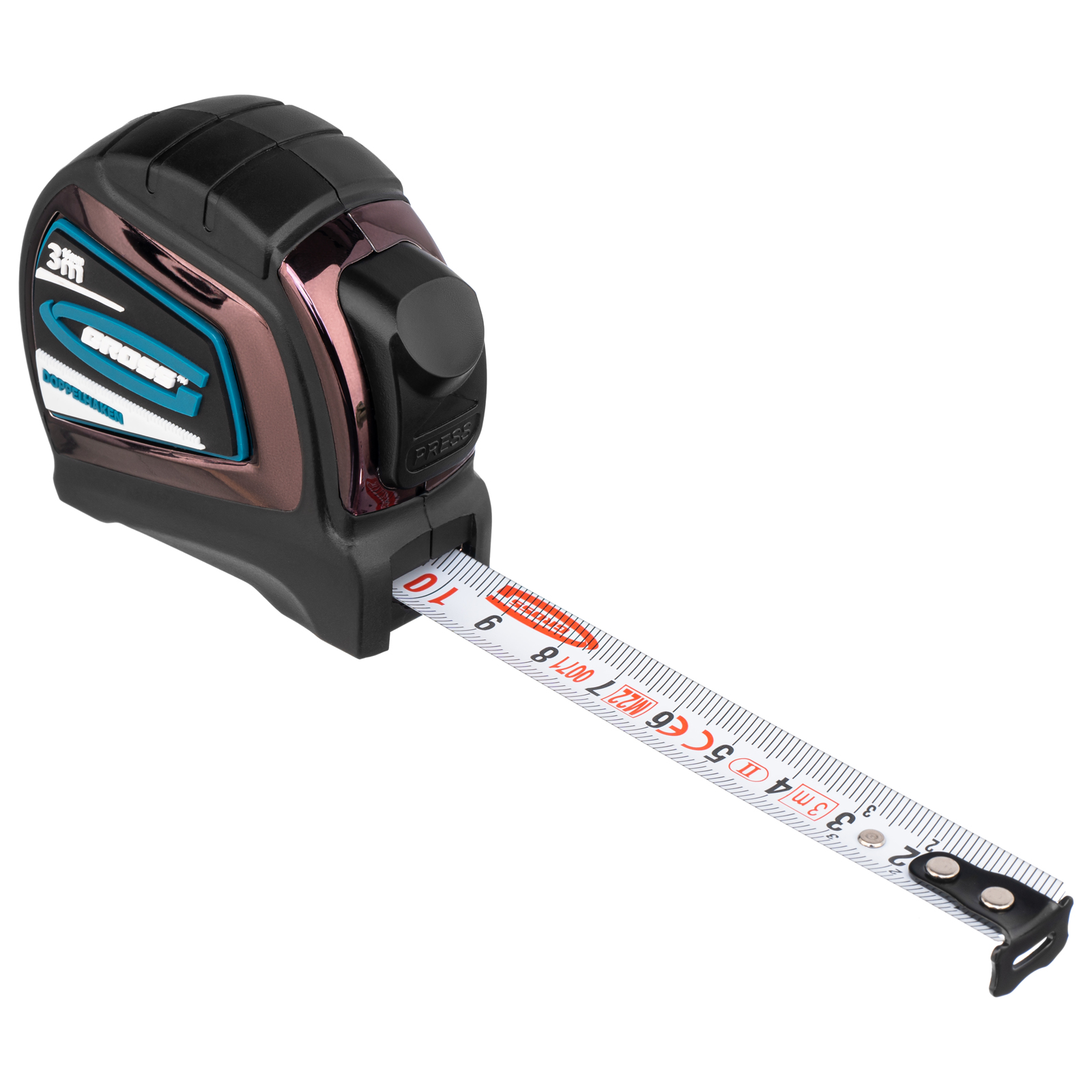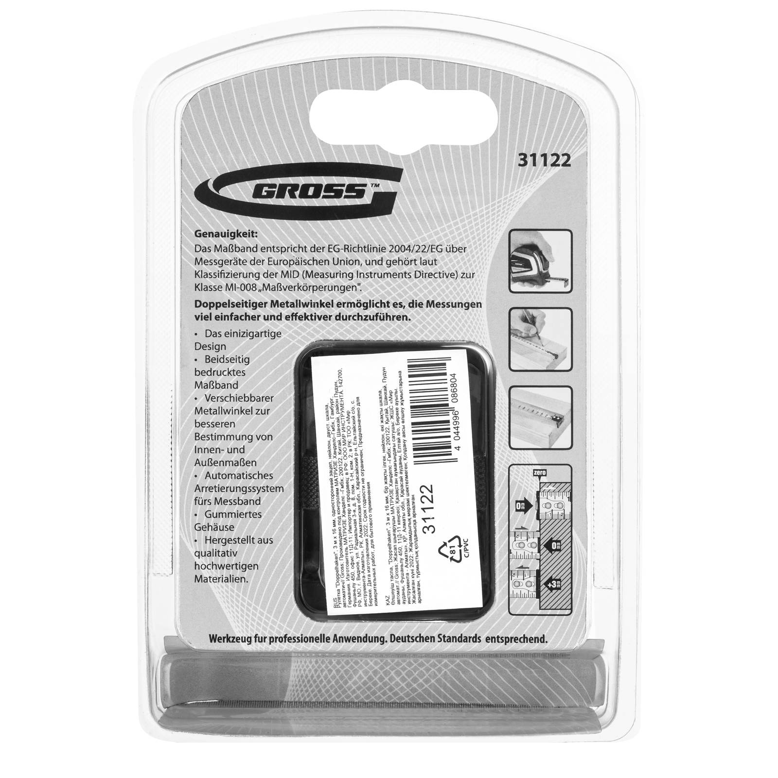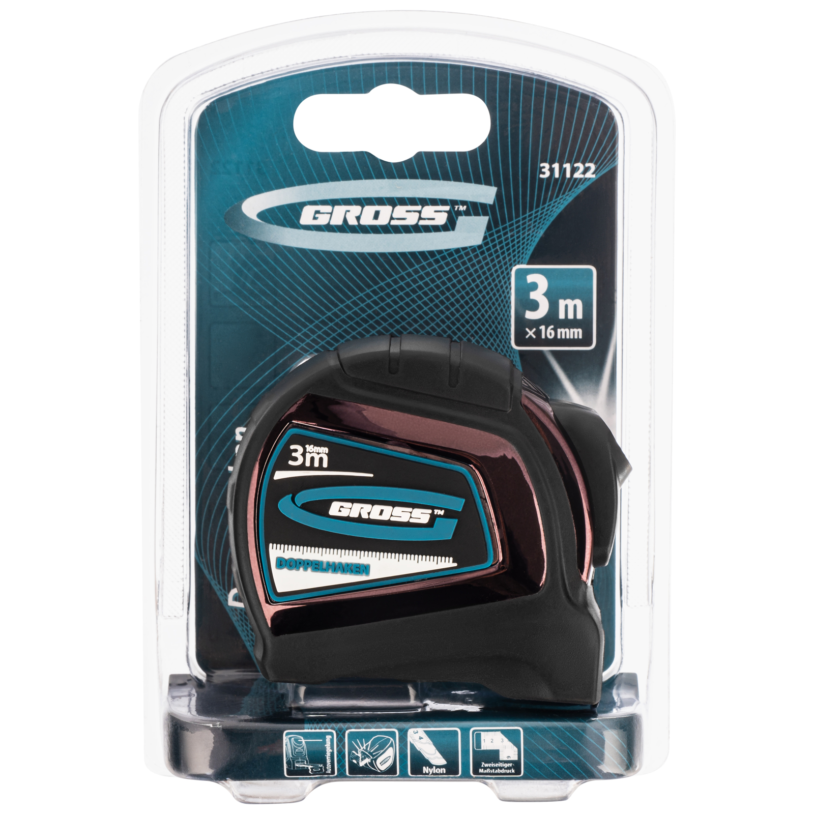 Рулетка "Doppelhaken",3 м x 16 мм,односторонний зацеп,Нейлон,двусторонняя шкала,автоматическая фиксация Gross в Казани