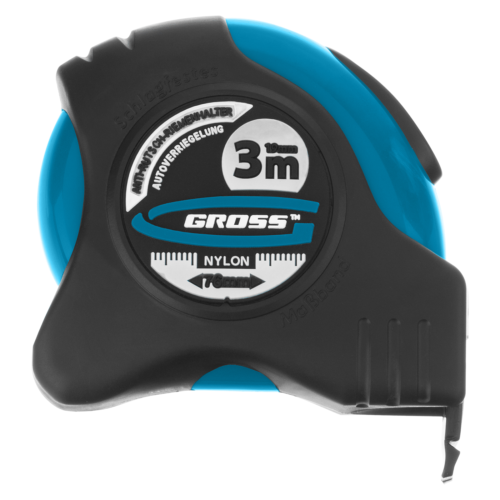 Рулетка "Schlagfest",3 м x 19 мм,магнитный обрезиненный зацеп,двусторонняя шкала,Нейлоновое покрытие,автоматическая фиксация Gross в Казани