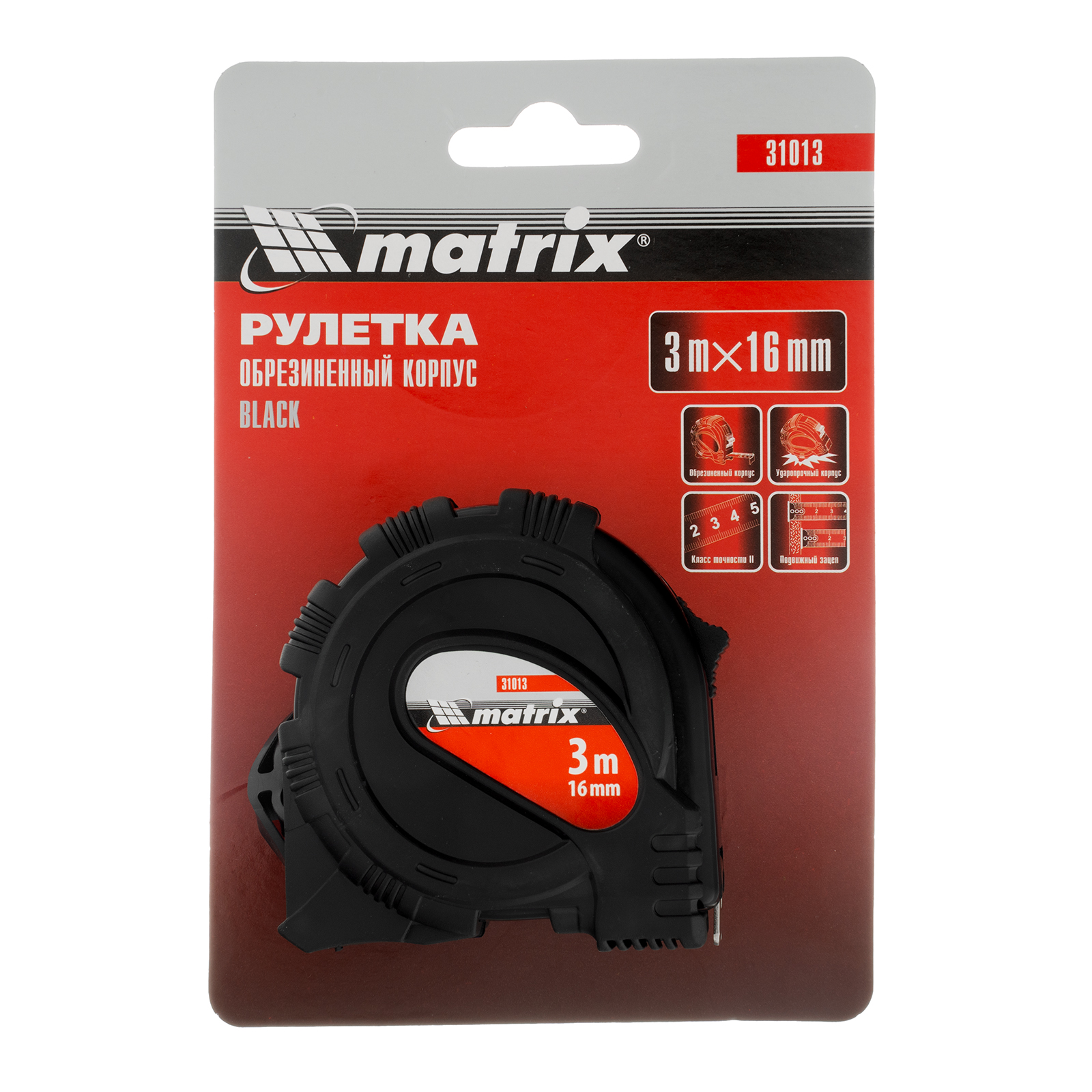 Рулетка Black,3 м х 16 мм,обрезиненный корпус Matrix в Казани
