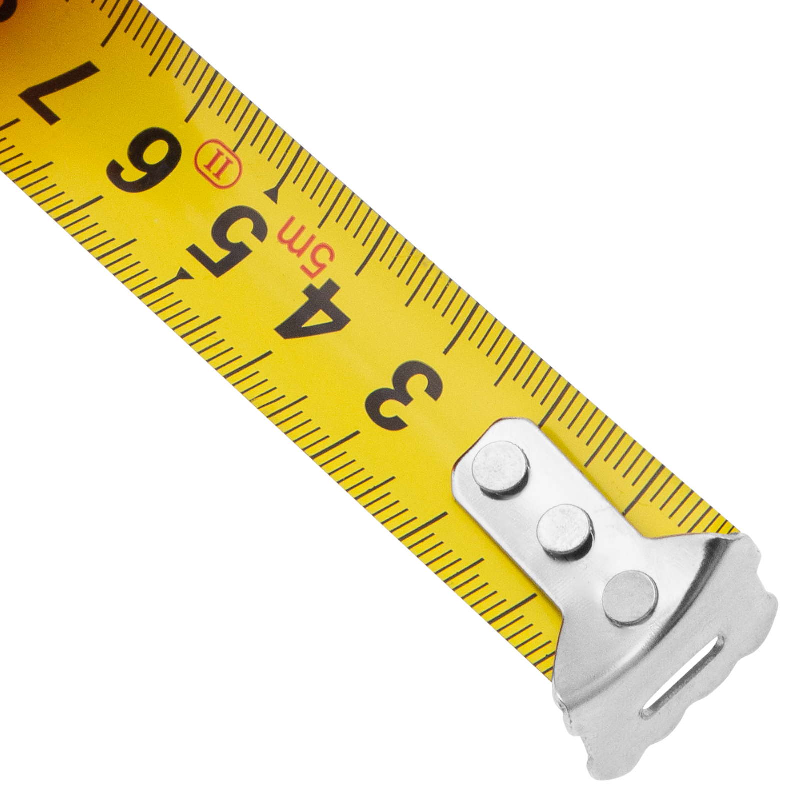 - Точность измерений до миллиметра — плавающий зацеп обеспечивает совпадение нулевой отметки с краем детали.