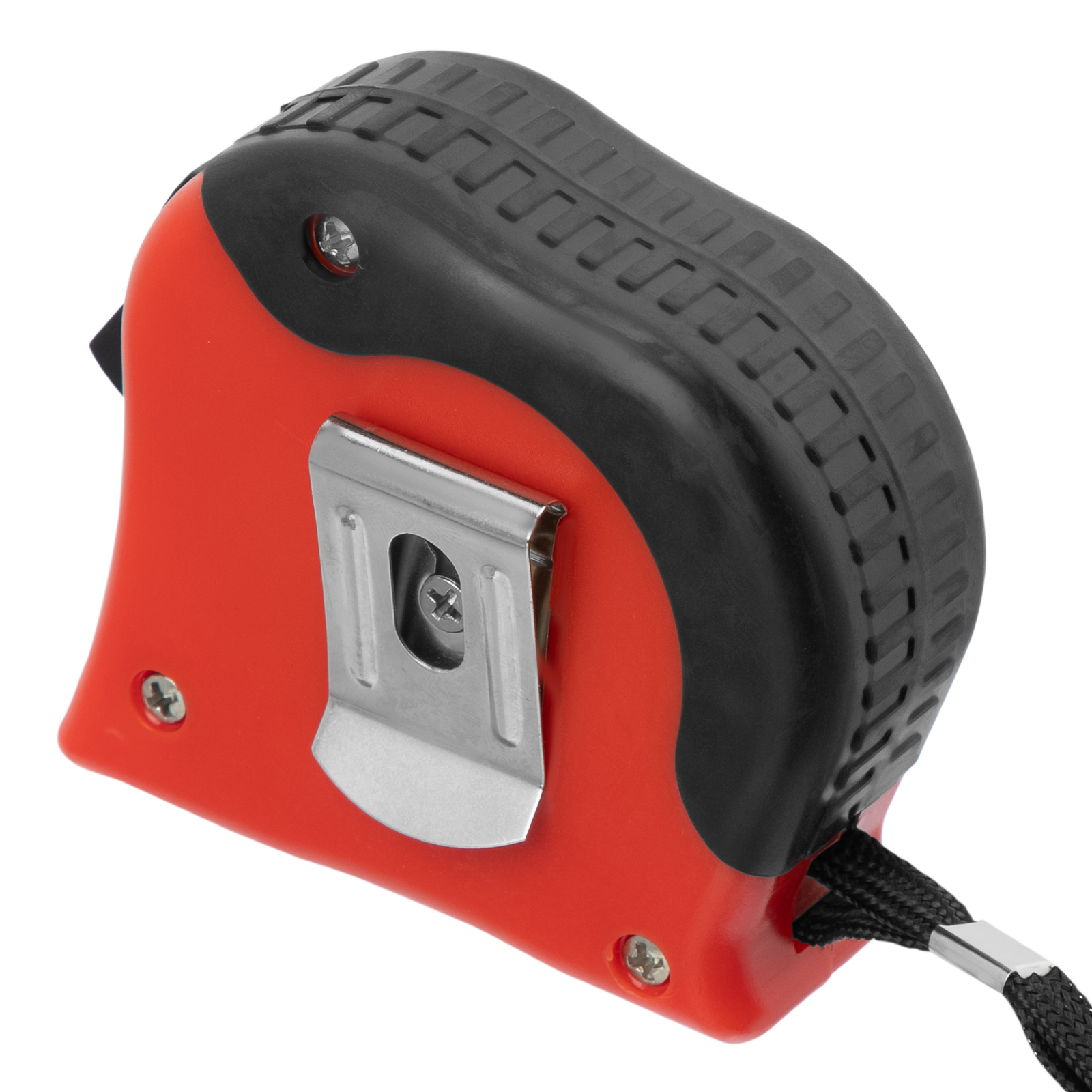 - Комфортное использование — нейлоновый ремешок позволяет носить рулетку на запястье, при помощи металлической скобы можно закрепить рулетку на поясе.