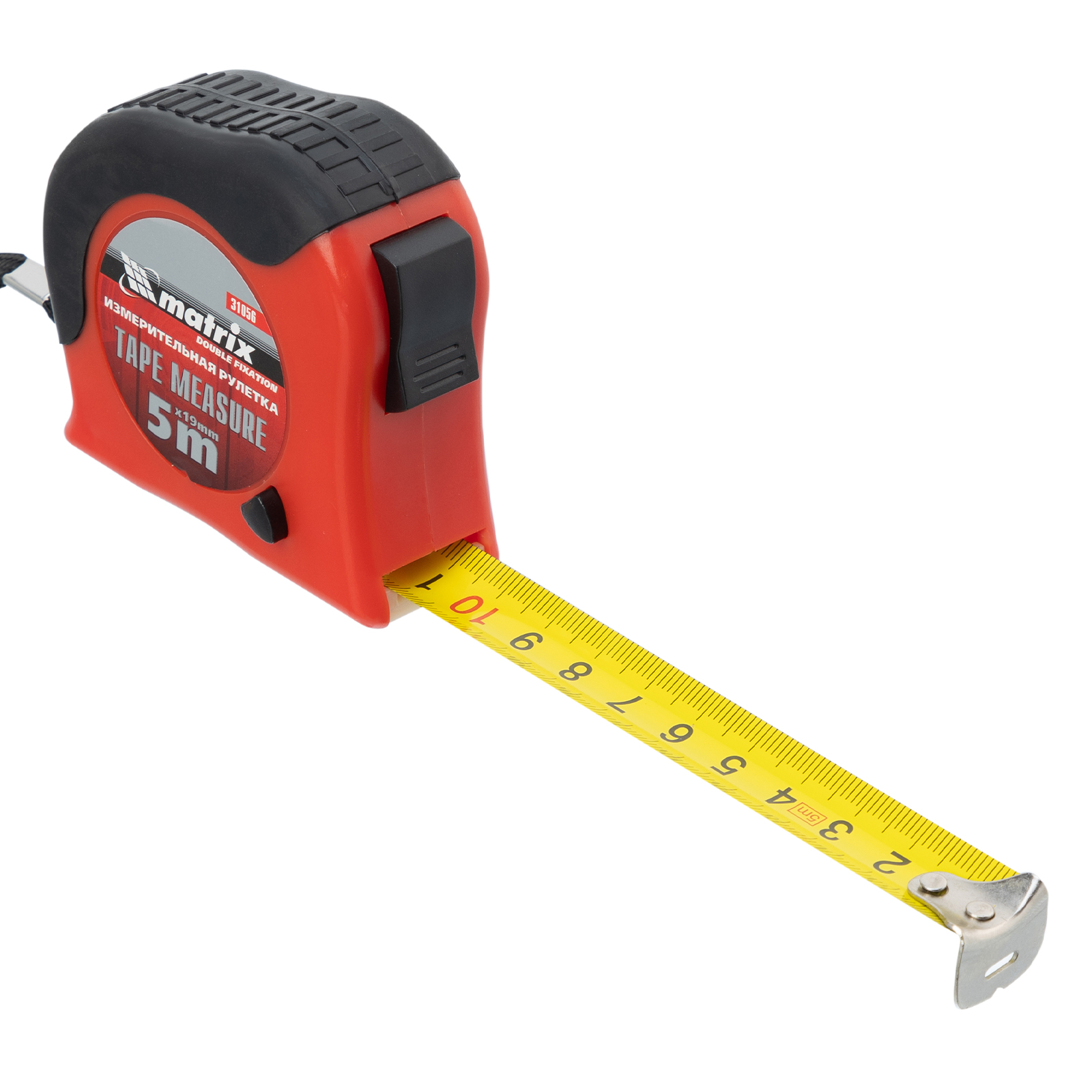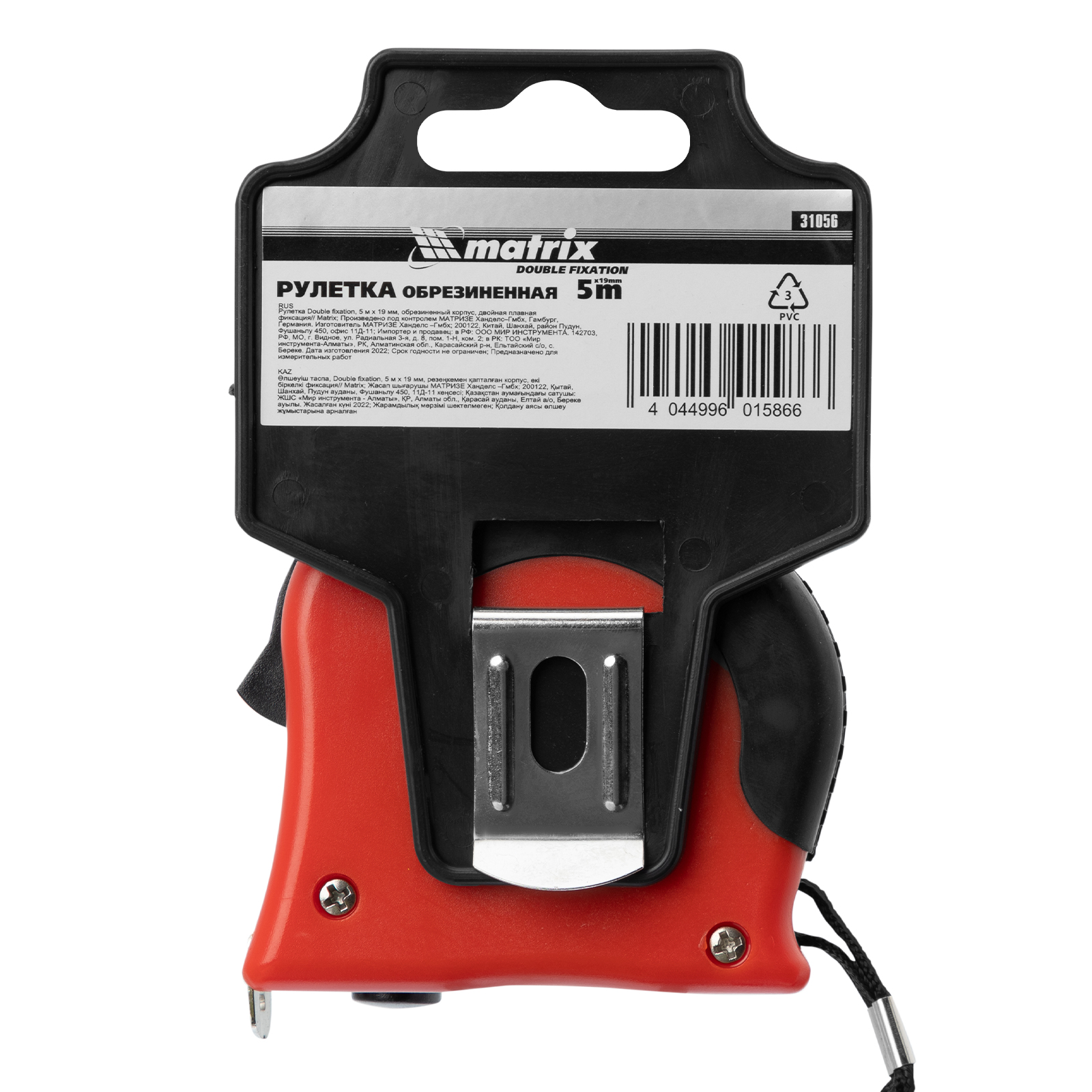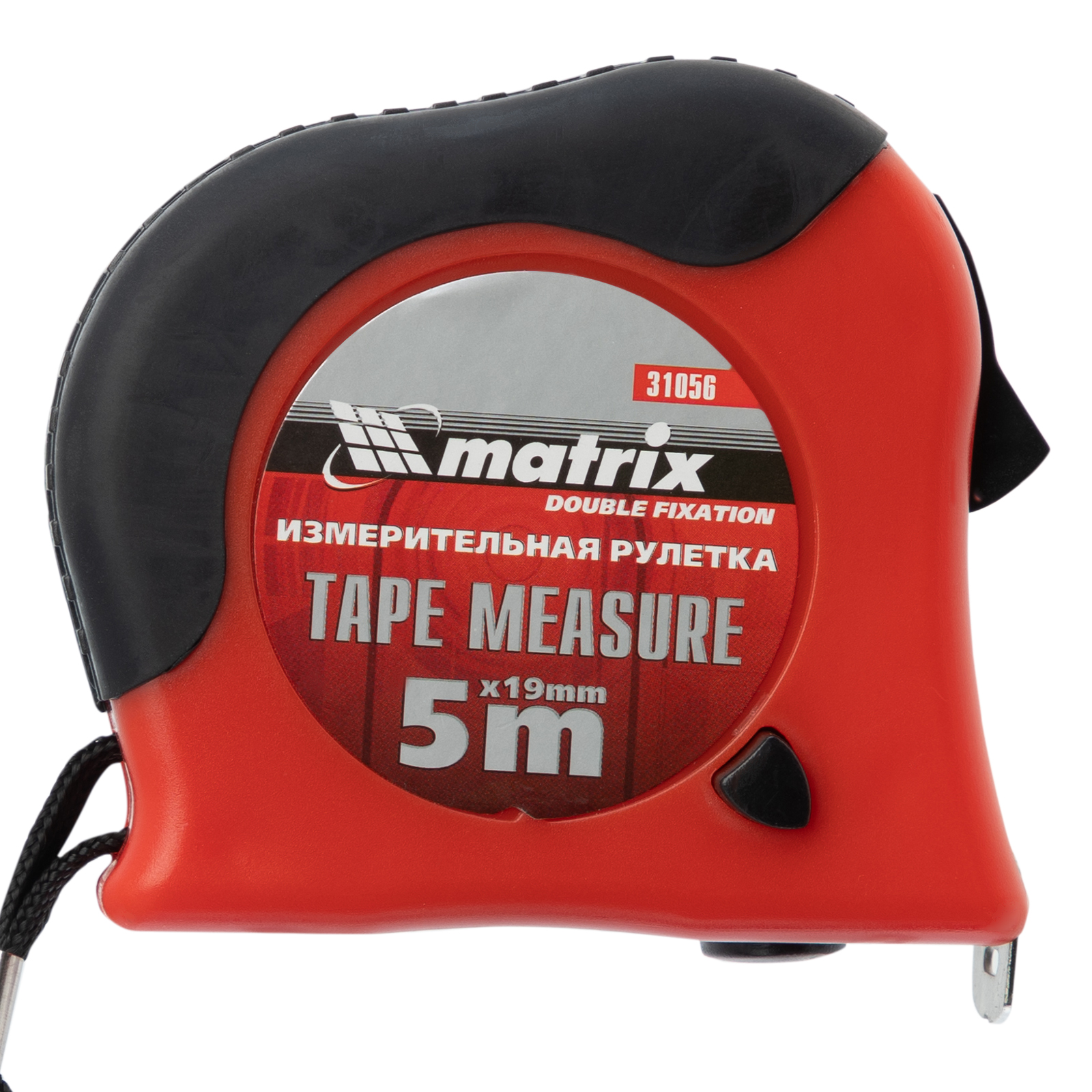 Рулетка Double fixation,5 м х 19 мм,обрезиненный корпус,двойная плавная фиксация Matrix в Казани
