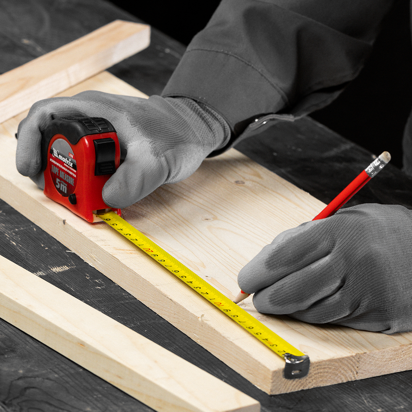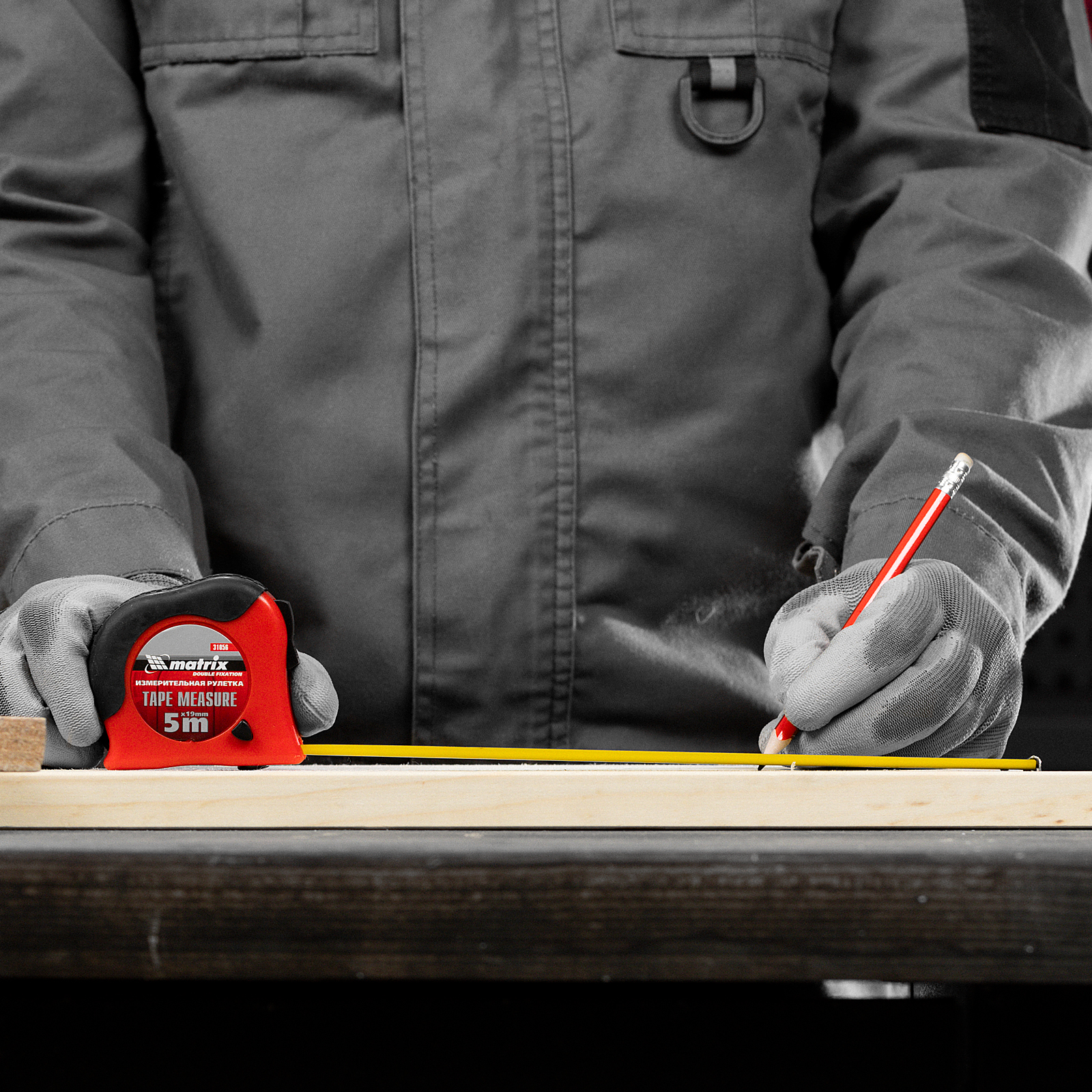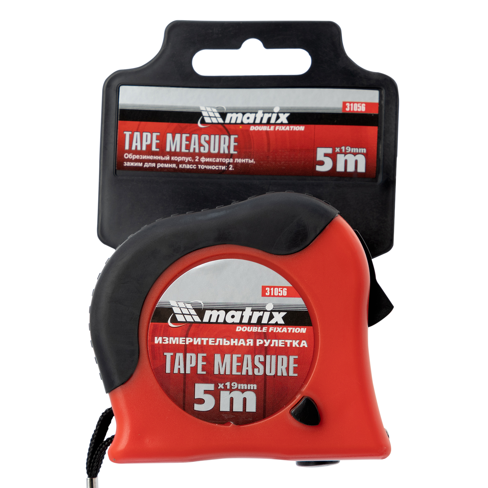 Рулетка Double fixation,5 м х 19 мм,обрезиненный корпус,двойная плавная фиксация Matrix в Казани