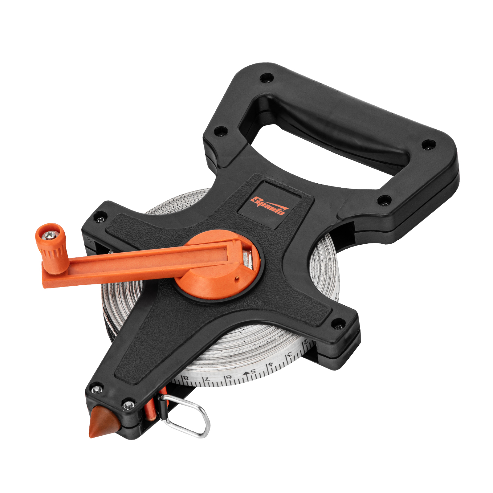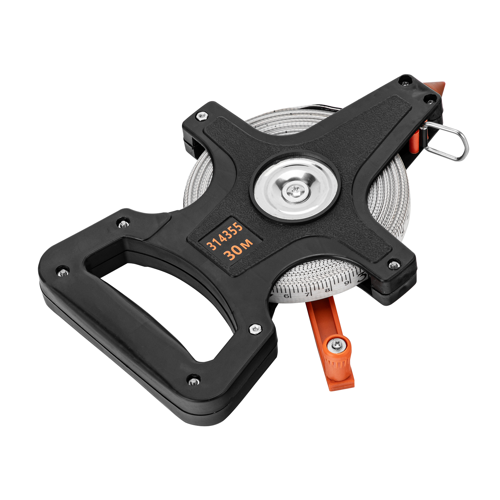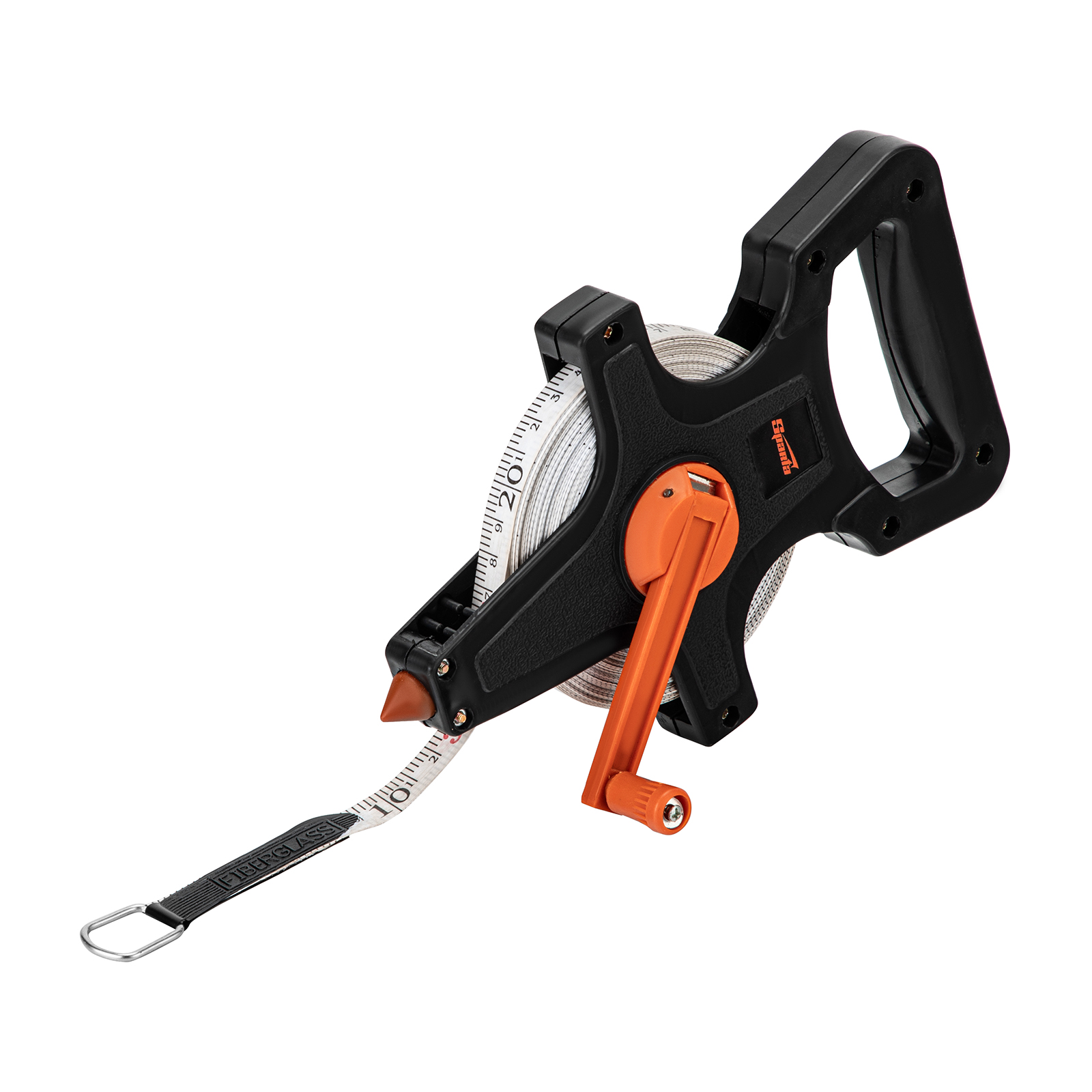 - Рулетка позволяет быстро смотать ленту благодаря удобной удлиненной ручке возвратного механизма.
