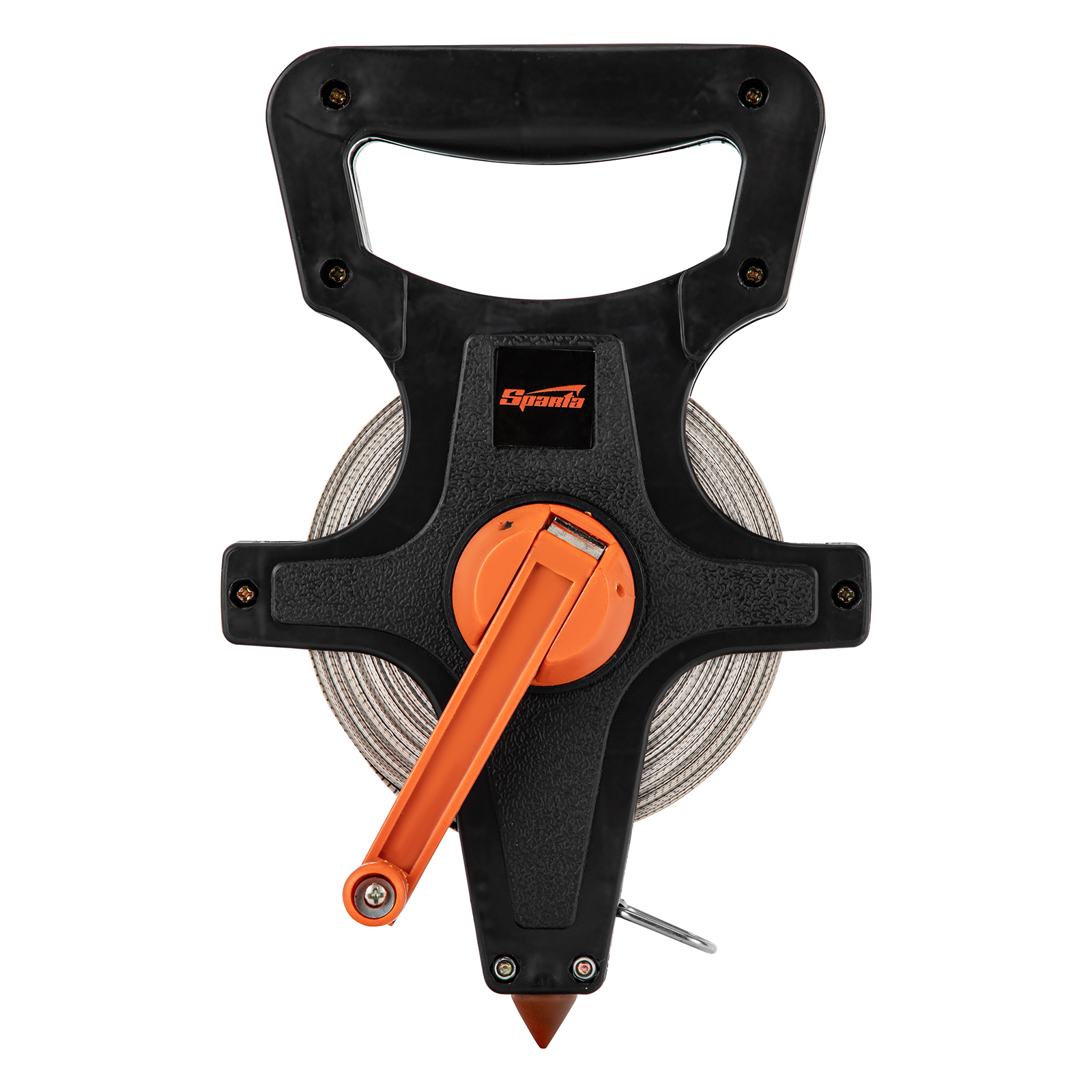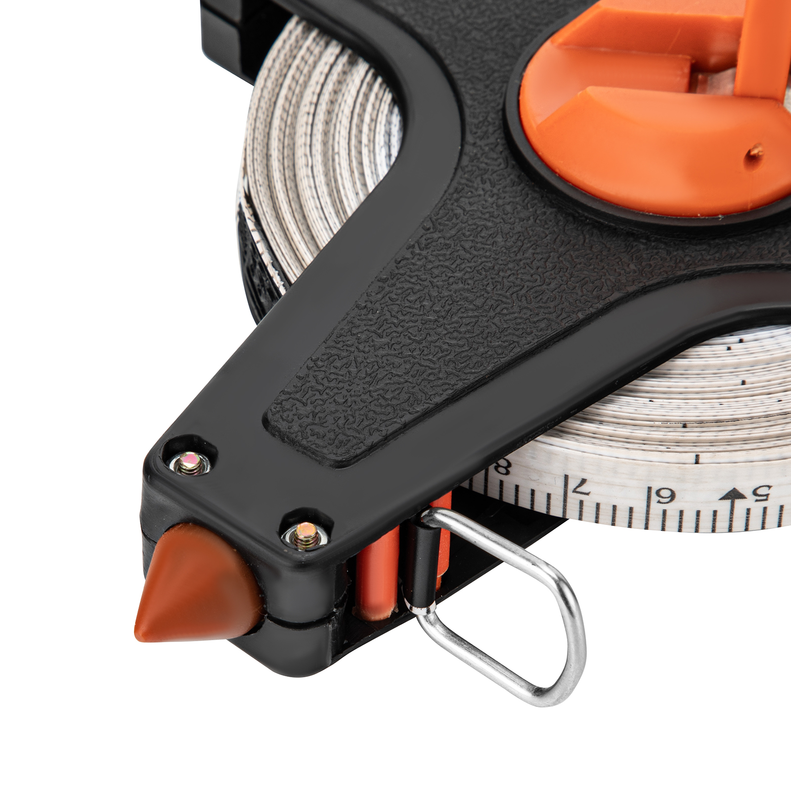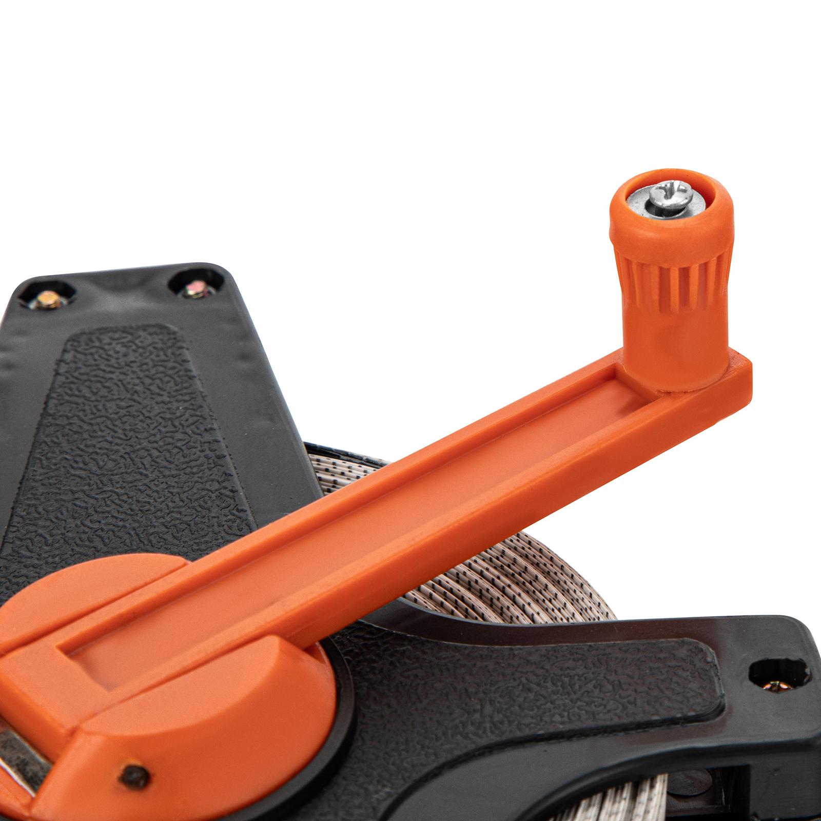 - Рулетка позволяет быстро смотать ленту благодаря удобной удлиненной ручке возвратного механизма.