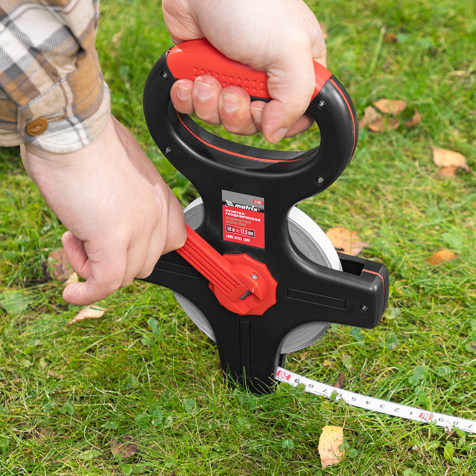 Рулетка геодезическая, 50 м х 12,5 мм, металлическая лента, открытый корпус Matrix