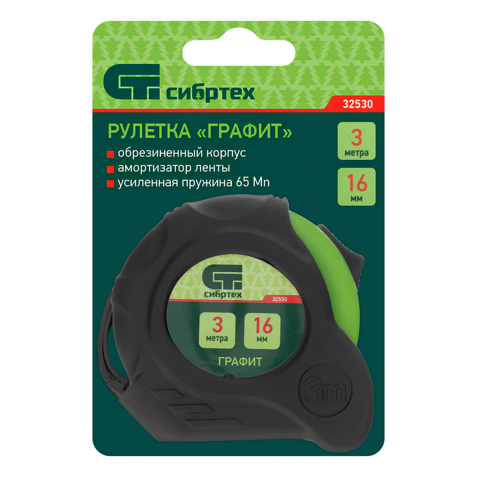 Рулетка Графит,обрезиненный корпус,амортизатор,3 м х 16 мм Сибртех в Казани