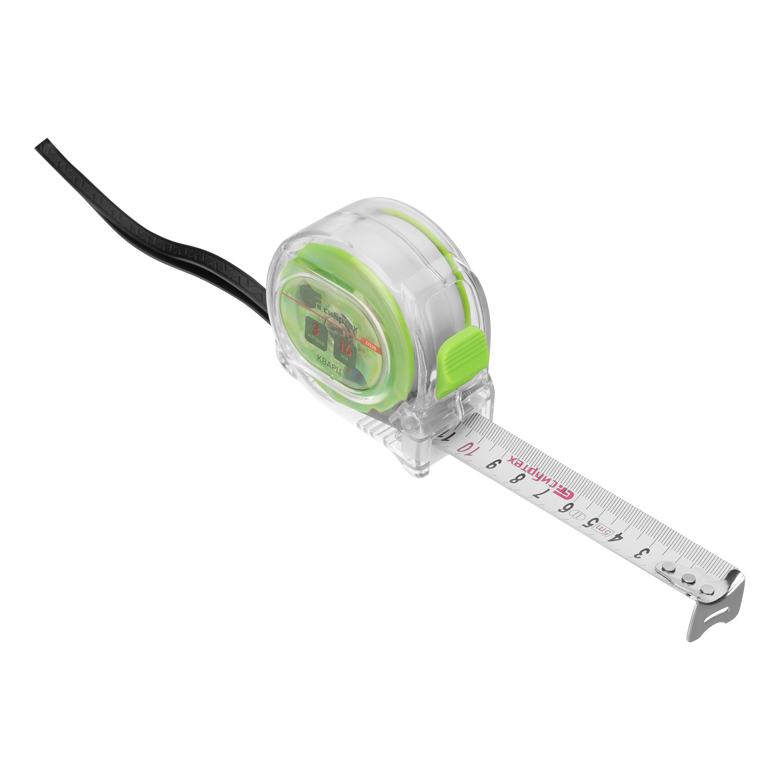 Рулетка Кварц,прозрачный корпус,амортизатор,3 м х 16 мм Сибртех в Казани
