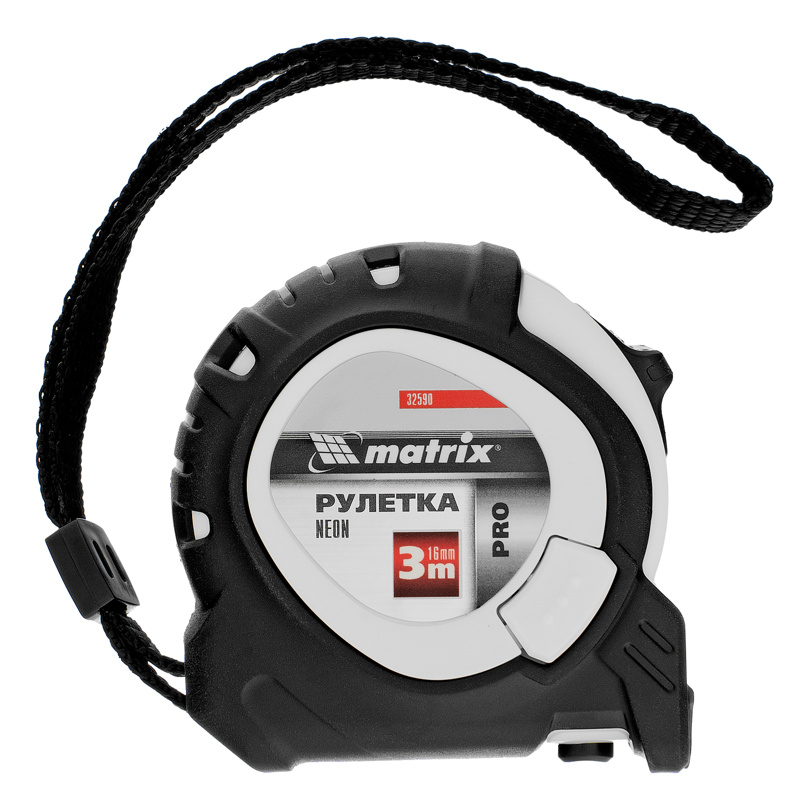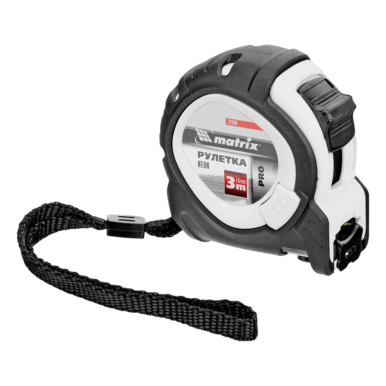 Рулетка Neon,3 м x 16 мм,обрезиненный корпус,3 фиксации,Pro Matrix в Казани