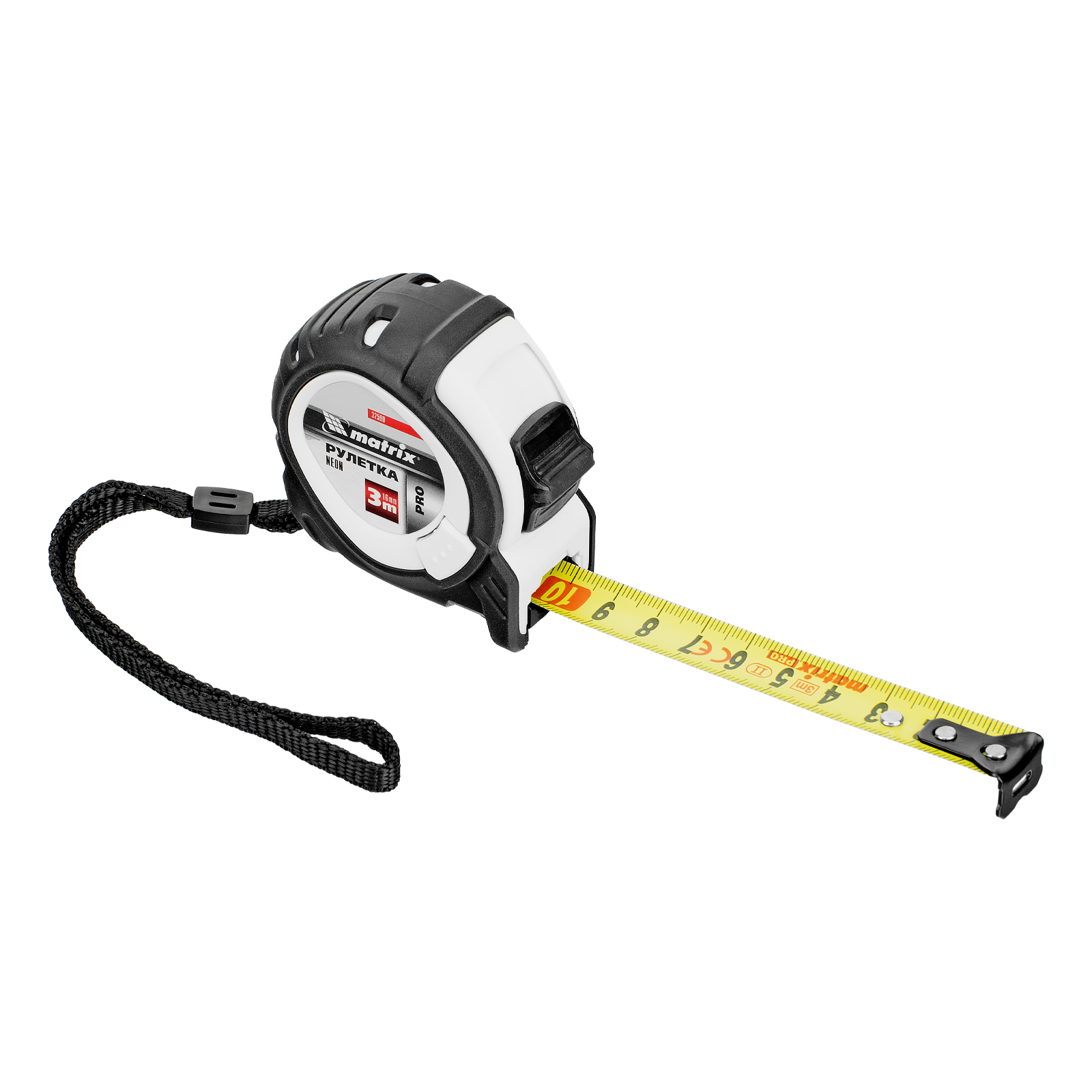 Рулетка Matrix PRO Neon 32590 в обрезиненном корпусе, с 3 механизмами фиксации ленты длиной 3 м и шириной 16 мм, служит для определения расстояний и размеров различных предметов. Крупные цифры на матовом желто-зеленом полотне хорошо видны, что облегчает считывание результатов. Измерительное полотно можно зафиксировать на нужной отметке при помощи стопора или одной из двух кнопок-пауз — это удобно при проведении большого количества замеров. Рулетка предназначена для выполнения профессиональных и бытовых измерительных работ.