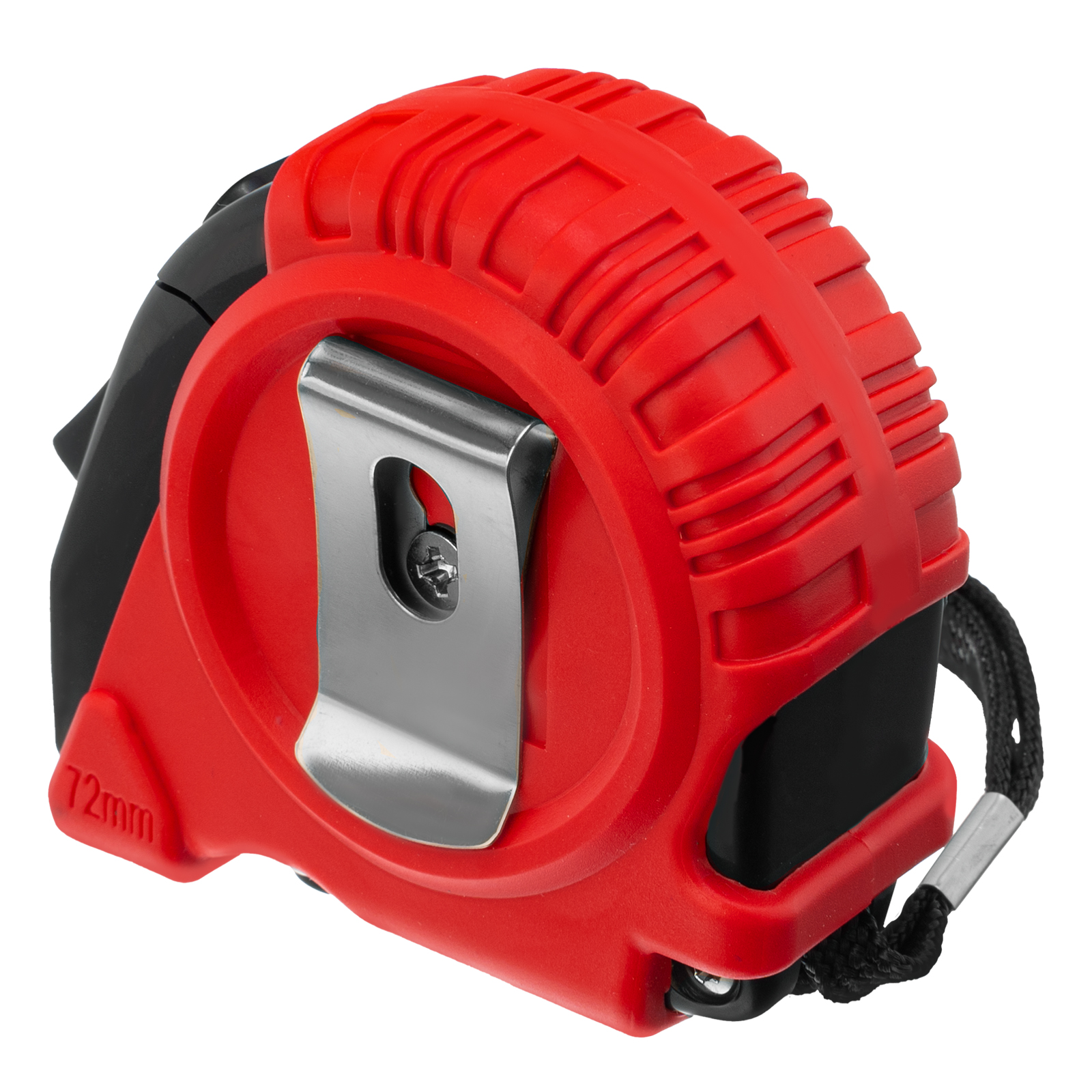 - Защита от падения — шнурок позволяет закрепить рулетку на запястье, клипса на корпусе — на поясном ремне.
