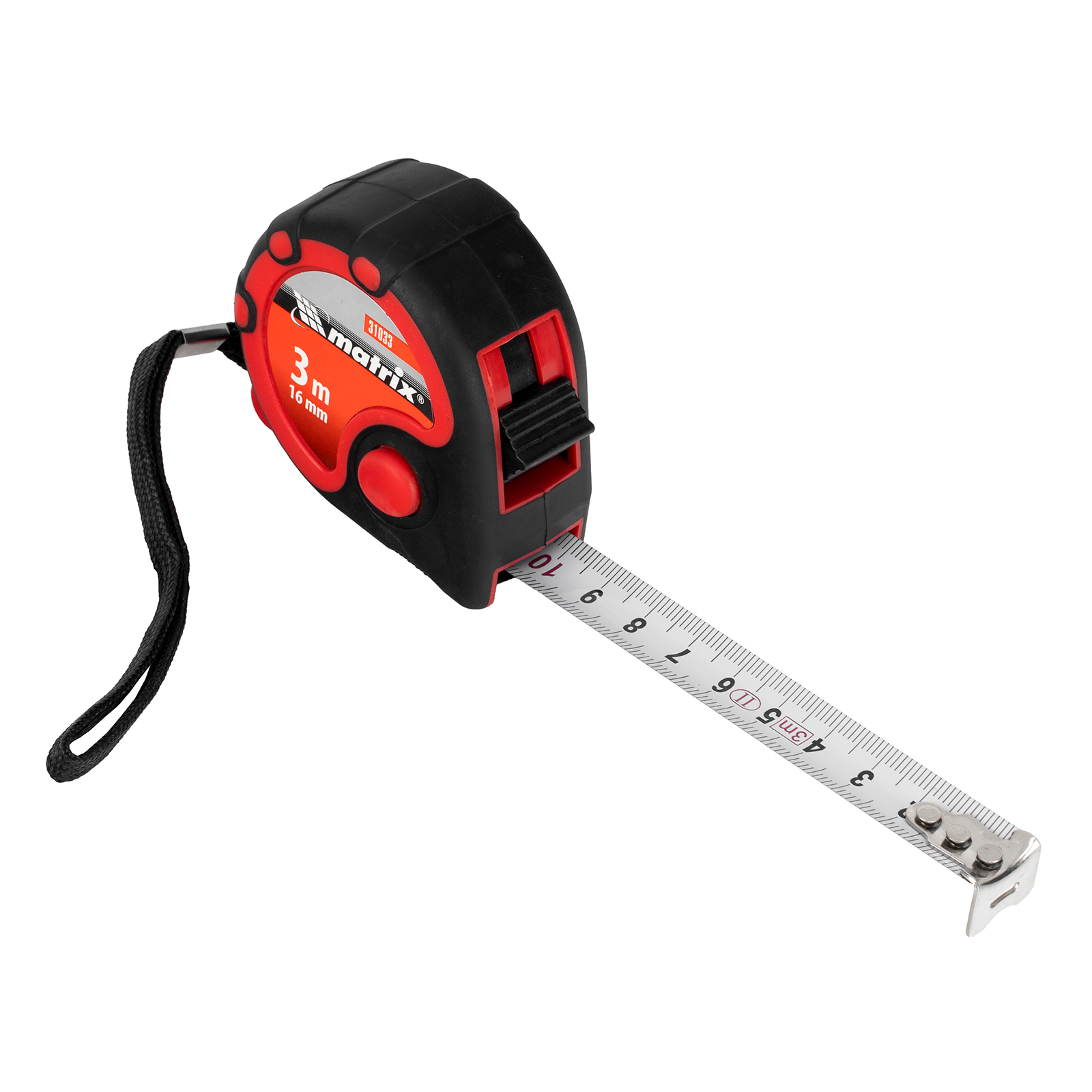 Рулетка Matrix Status 3 fixations 31033 в двухкомпонентном корпусе, с 3 способами фиксации ленты длиной 3 м и шириной 16 мм, предназначена для проведения измерений, имеет 2 класс точности и цену деления 1 мм. Механизм рулетки помещен в частично обрезиненный корпус из прочного пластика, что защищает инструмент от повреждений в результате случайных падений или ударов. Зацеп надежно прикреплен к измерительной ленте заклепками. Рулетка пригодится строителям, мастерам по ремонту, будет полезна и в быту.