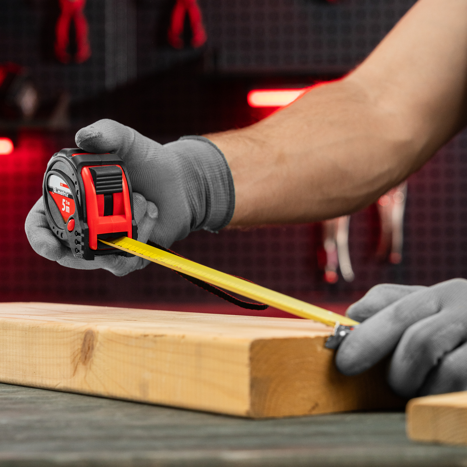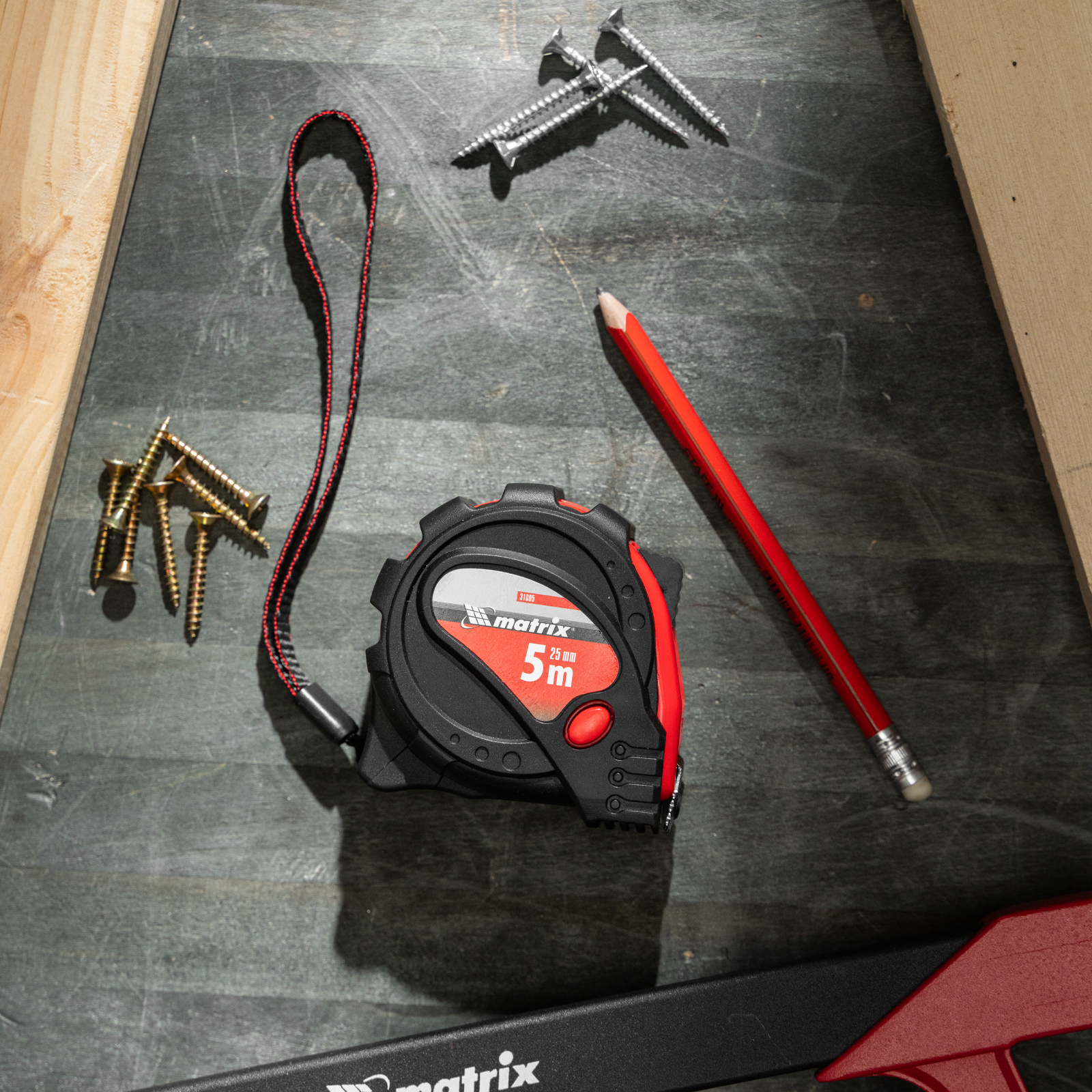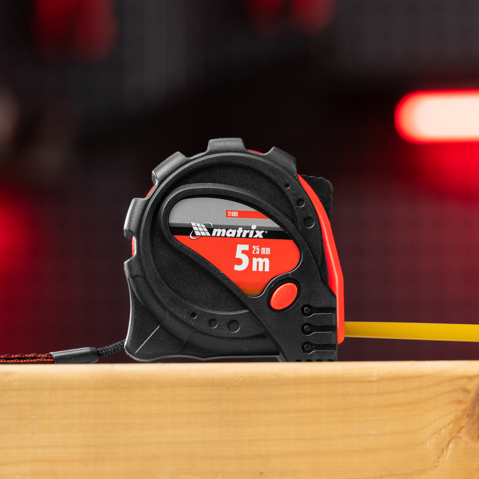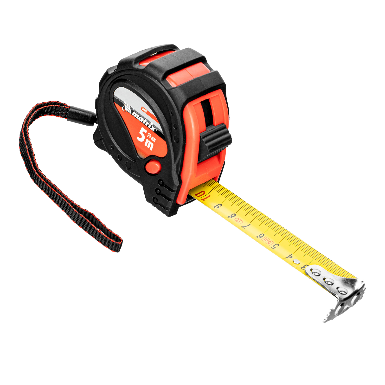 Рулетка Matrix Status magnet 3 fixations 31005 с полотном длиной 5 м и шириной 25 мм, в обрезиненном корпусе, оснащенная зацепом с магнитом, предназначена для измерения различных объектов и расстояний. Имеет класс точности 2 и цену деления 1 мм, что обеспечивает достаточную результативность замеров. Магнитный зацеп позволяет четко фиксировать измерительное полотно на металлических предметах. Стальная лента шириной 25 мм обладает большой упругостью, что облегчает работу в труднодоступных местах. Рулетка будет полезна при проведении строительных работ, а также пригодится в быту.