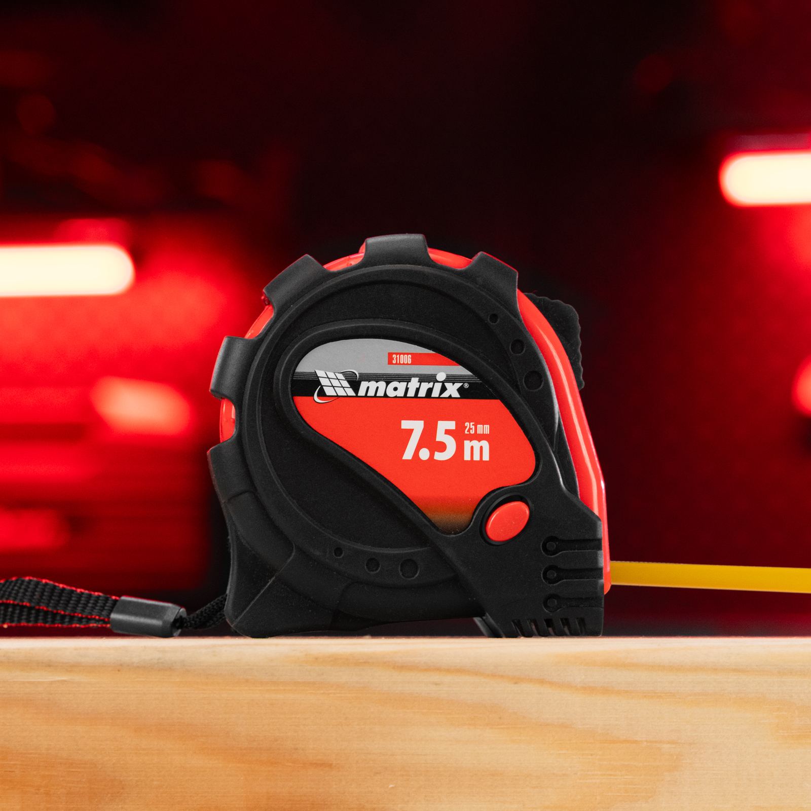 Рулетка Status Magnet 3 fixations,7,5 м х 25 мм,обрезиненный корпус,зацеп с магнитом Matrix в Казани