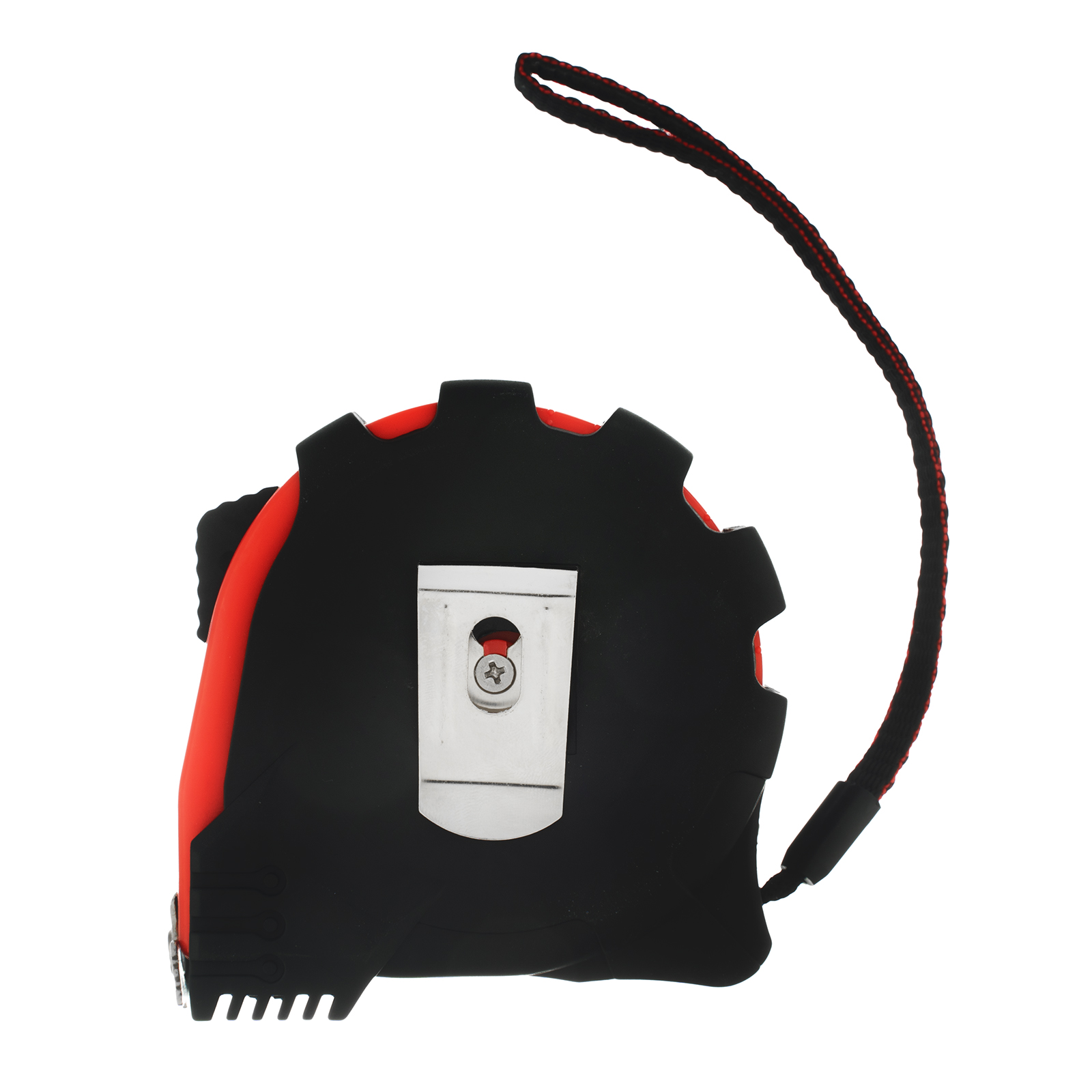 - Дополнительные возможности — шнурок для крепления на запястье уменьшает риск падения рулетки, на боковой поверхности имеется зажим для фиксации рулетки на поясном ремне.
