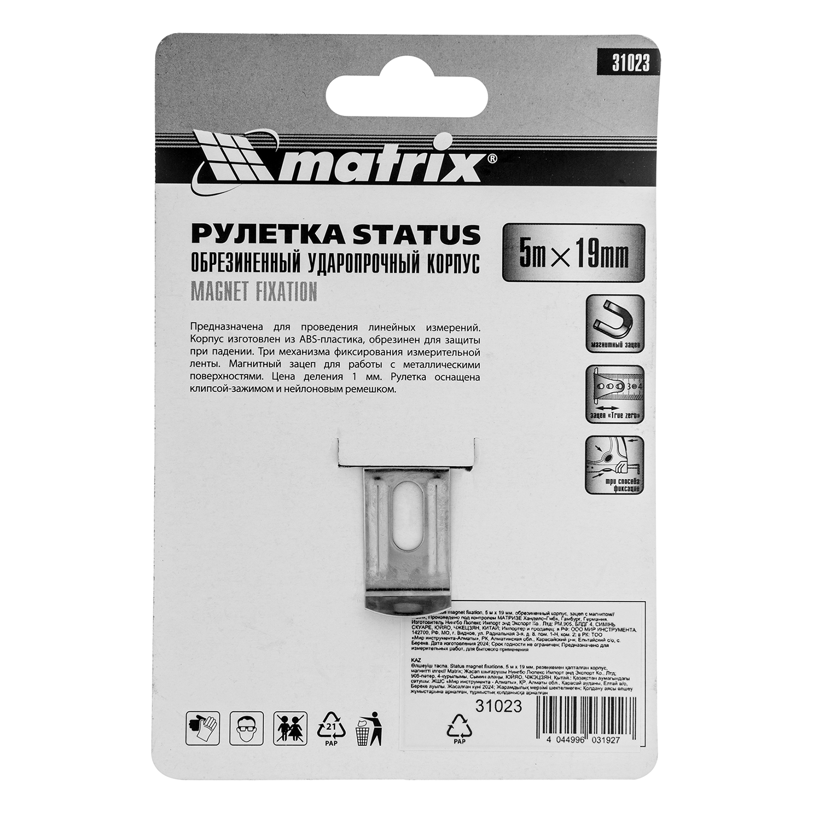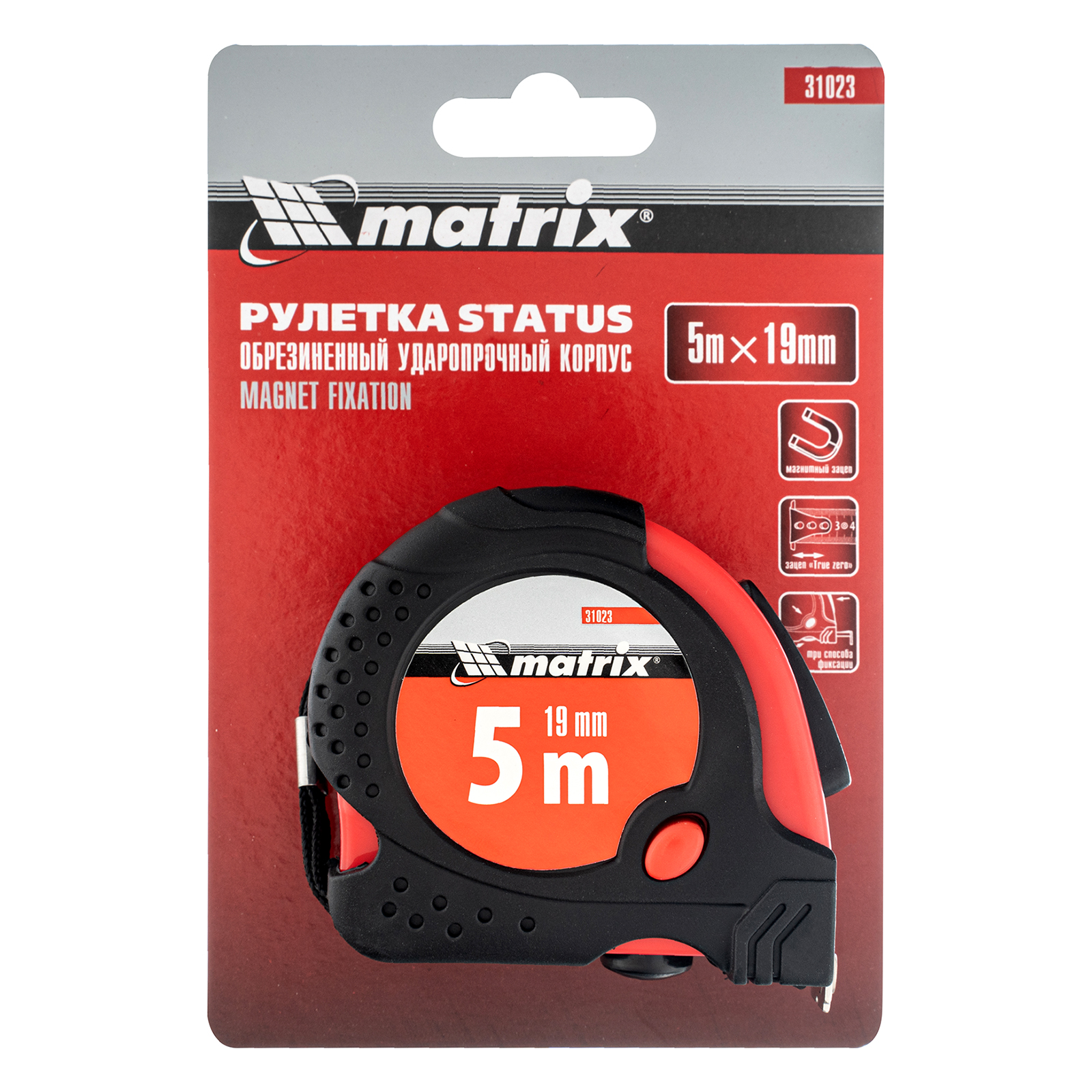 Рулетка Status Magnet fixation,5 м х 19 мм,обрезиненный корпус,зацеп с магнитом Matrix в Казани