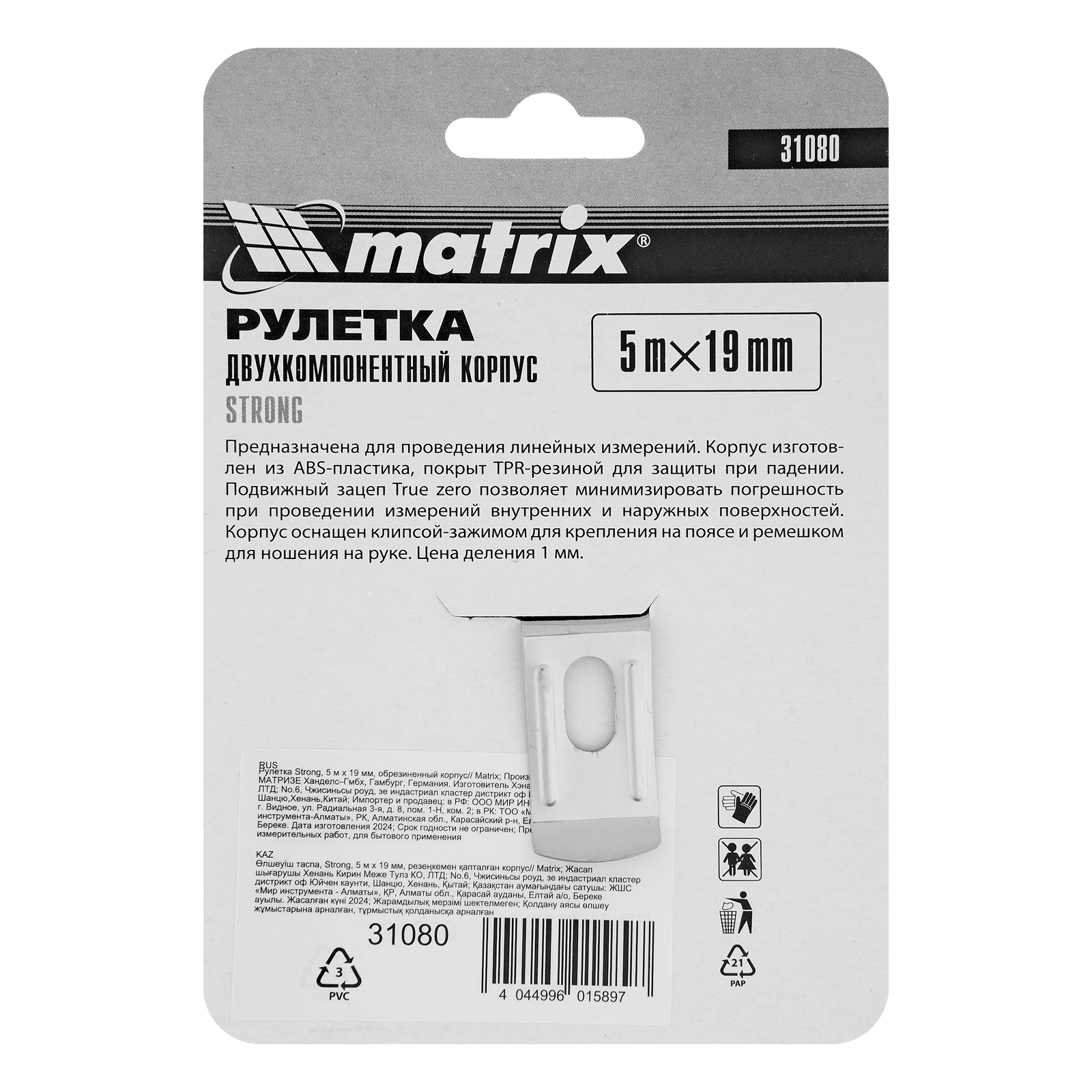 Рулетка Strong,5 м х 19 мм,обрезиненный корпус Matrix в Казани
