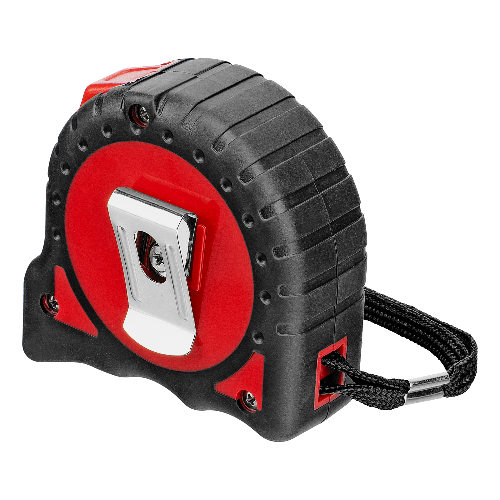 - Комфортная транспортировка — нейлоновый ремешок позволяет подвешивать рулетку на запястье, при помощи металлической клипсы-зажима ее можно зафиксировать на поясе.