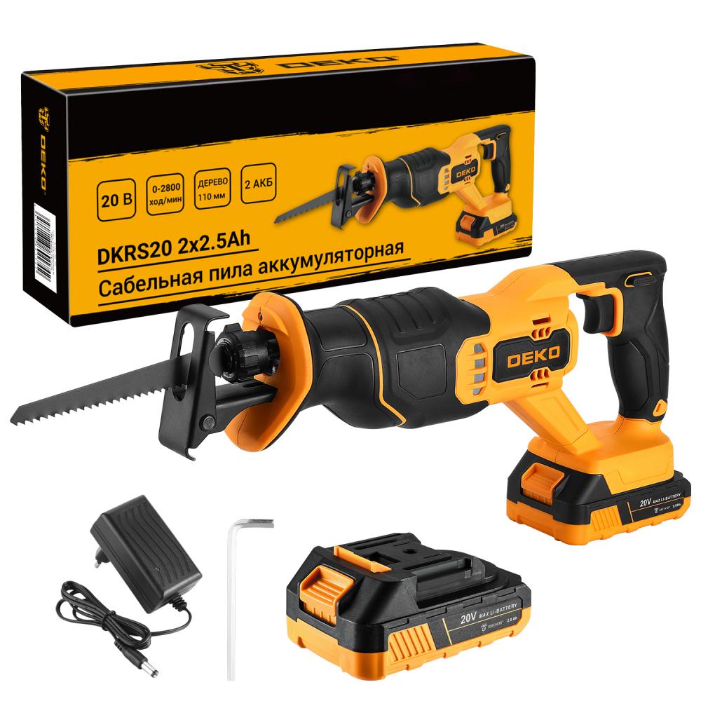 Сабельная пила аккумуляторная DEKO DKRS20, 20В, 2х2.5Ач