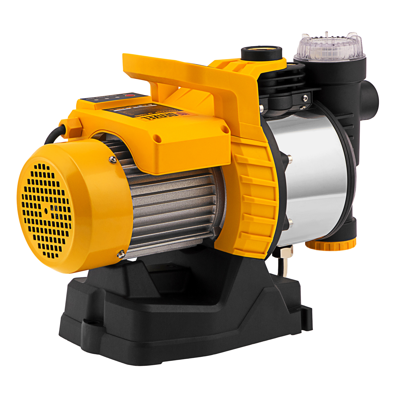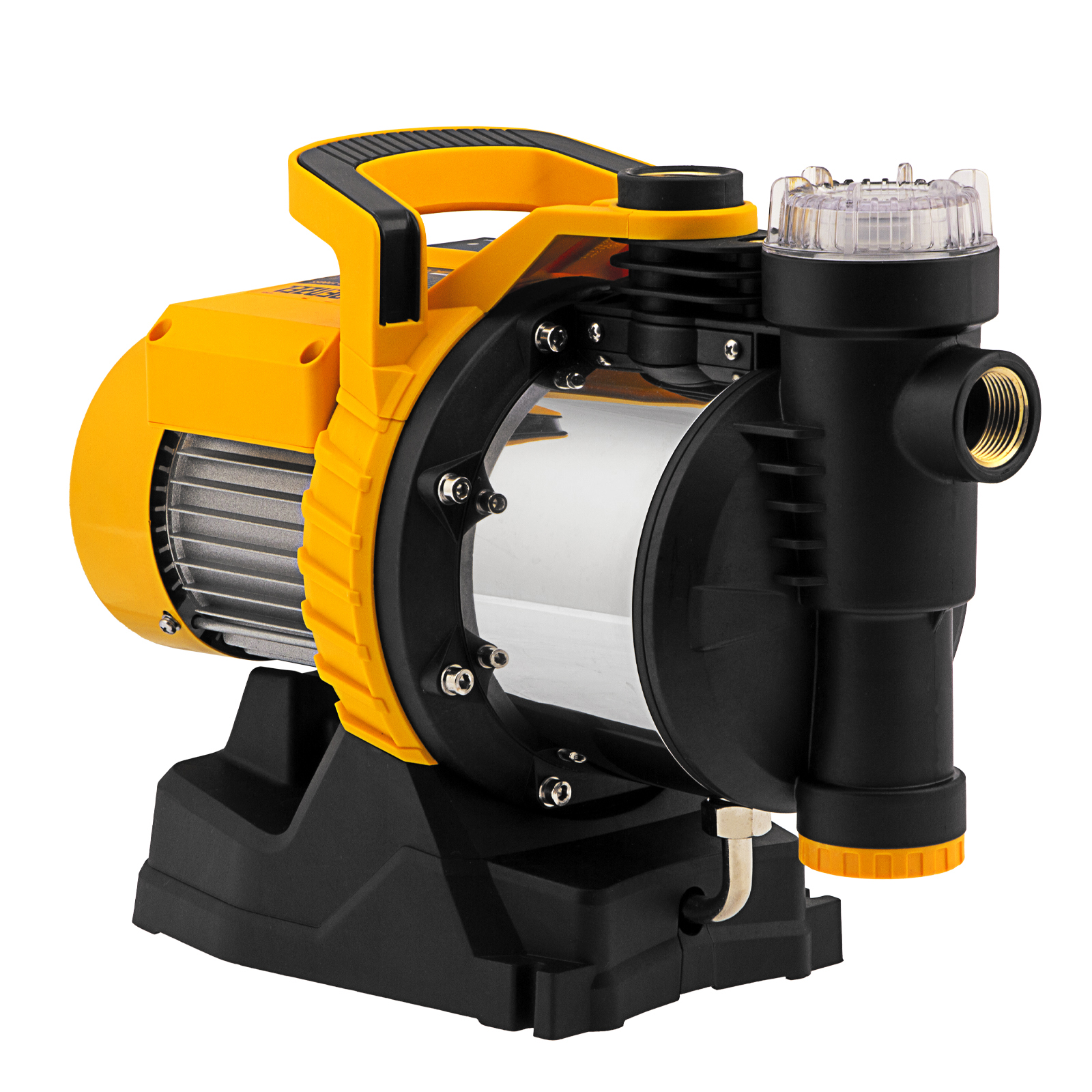 Садовый поверхностный насос Denzel GP1100SS 97305 мощностью 1100 Вт и производительностью до 4000 л/ч, с корпусом из пластика, осуществляет забор чистой воды с глубины до 8 м из колодцев, емкостей и водоемов, поднимая ее на высоту до 45 м. Используется для организации системы полива и водоснабжения на даче. Его можно подключать к водопроводной системе для обеспечения стабильного напора. Производительности насоса хватит для снабжения нескольких водоразборных точек одновременно.