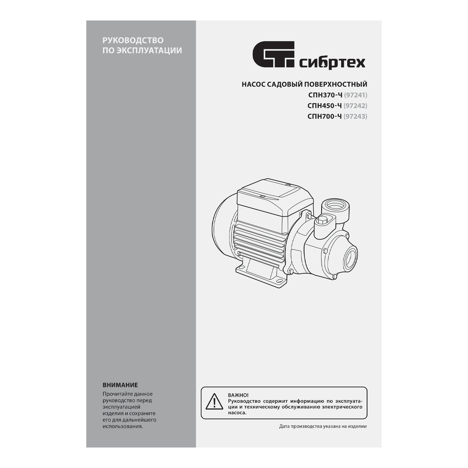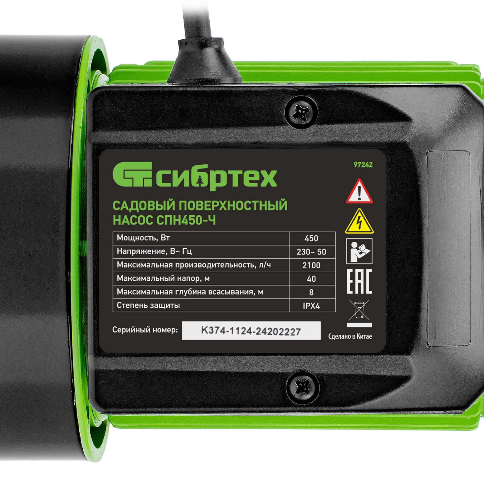 Садовый поверхностный насос СПН450-Ч, 450 Вт, напор 40 м, 2100 л/ч, чугун Сибртех в Казани