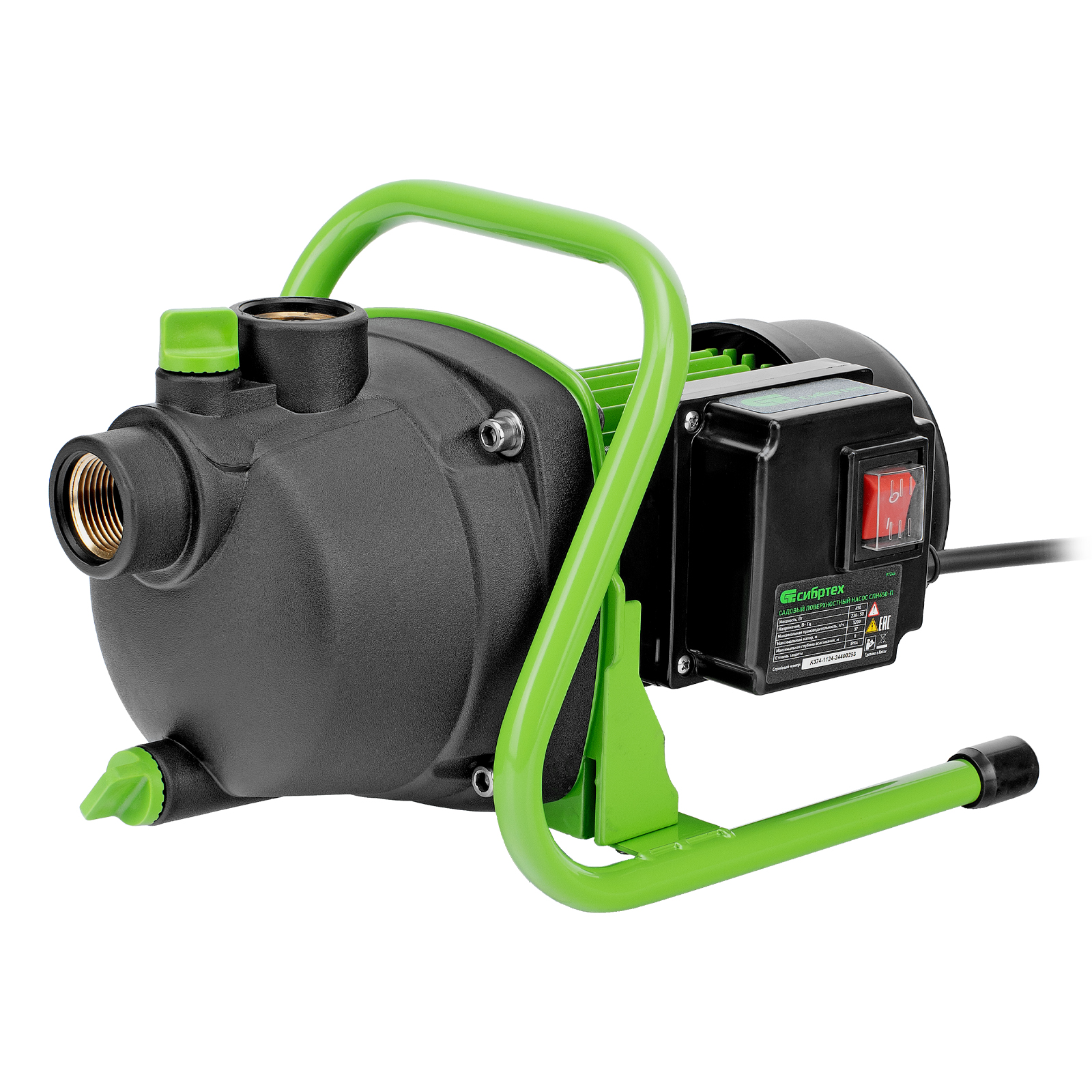Садовый поверхностный насос Сибртех СПН650-П 97244, с корпусом насосной части из пластика, мощностью 650 Вт, предназначен для перекачивания воды с глубины до 8 м и со скоростью 3200 л/ч, создавая напор до 37 м. Высокой производительности достаточно для организации системы полива и водоснабжения в частном доме с несколькими точками водоразбора. Напор 37 м позволяет подавать воду на верхние этажи.