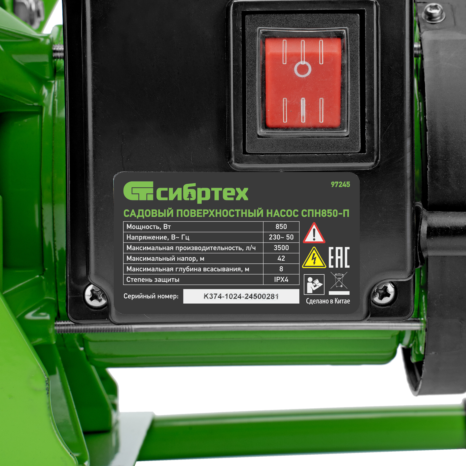 Садовый поверхностный насос СПН850-П, 850 Вт, напор 42 м, 3500 л/ч, пластик Сибртех