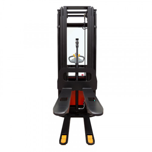 Самоходный штабелер PROLIFT SDR 1545 с литий-ионной АКБ предназначен для поднятия груза весом до 1500 кг на высоту до 4500 мм. Подъем груза и перемещение штабелера осуществляется благодаря двум электродвигателям без необходимости прилагать физические усилия оператору, что значительно облегчает труд сотрудника и повышает производительность. Мачта выполнена из С-образного профиля с дополнительными ребрами жесткости. Благодаря такой конструктивной особенности срок эксплуатации штабелера значительно возрастает. На самоходном штабелере PROLIFT SDR 1545 установлен Li-ion аккумулятор емкостью 50 Ач. Встроенный индикатор заряда показывает напряжение АКБ, что позволит вам всегда поддерживать оборудование в рабочем состоянии. С целью повышения безопасности и комфорта работы сотрудника, на штабелере установлено множество дополнительных элементов, в частности: кнопка аварийного отключения, позволяющая быстро отключить штабелер в случае возникновения опасной ситуации, решетчатый экран на мачте, защищающий оператора от возможных травм, а ручка управления имеет интегрированный замок зажигания и полный набор необходимых клавиш управления, в том числе кнопку «черепашьего хода».  Функция «черепашьего хода» позволяет ограничивать скорость движения штабелера для лучшего его позиционирования.
