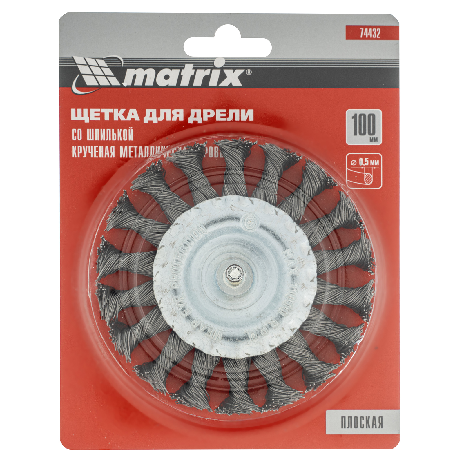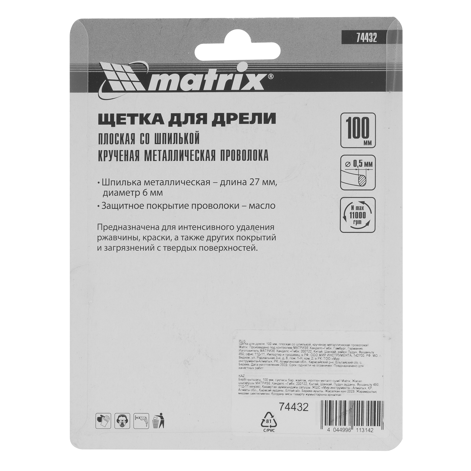 Щетка для дрели, 100 мм, плоская со шпилькой, крученая металлическая проволока Matrix в Казани