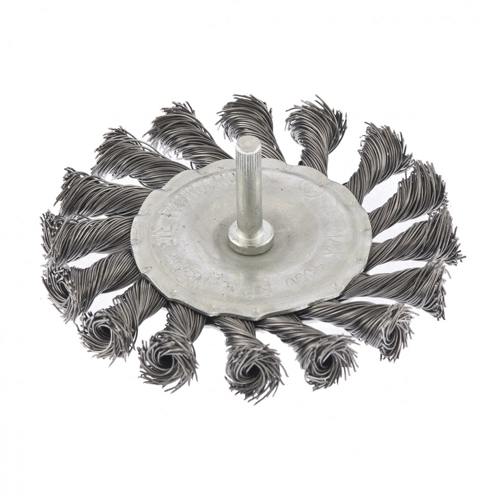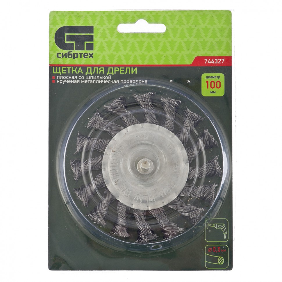 Щетка для дрели, 100 мм, плоская со шпилькой, крученая металлическая проволока Сибртех