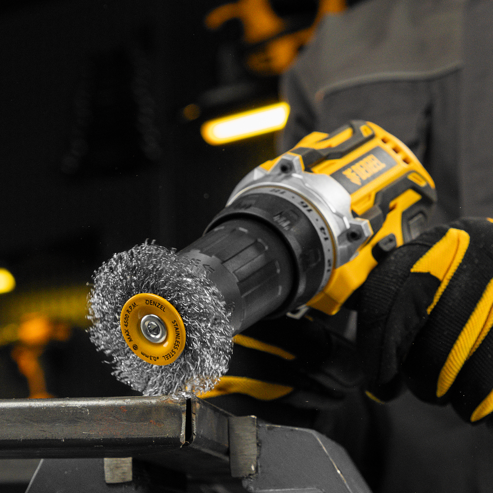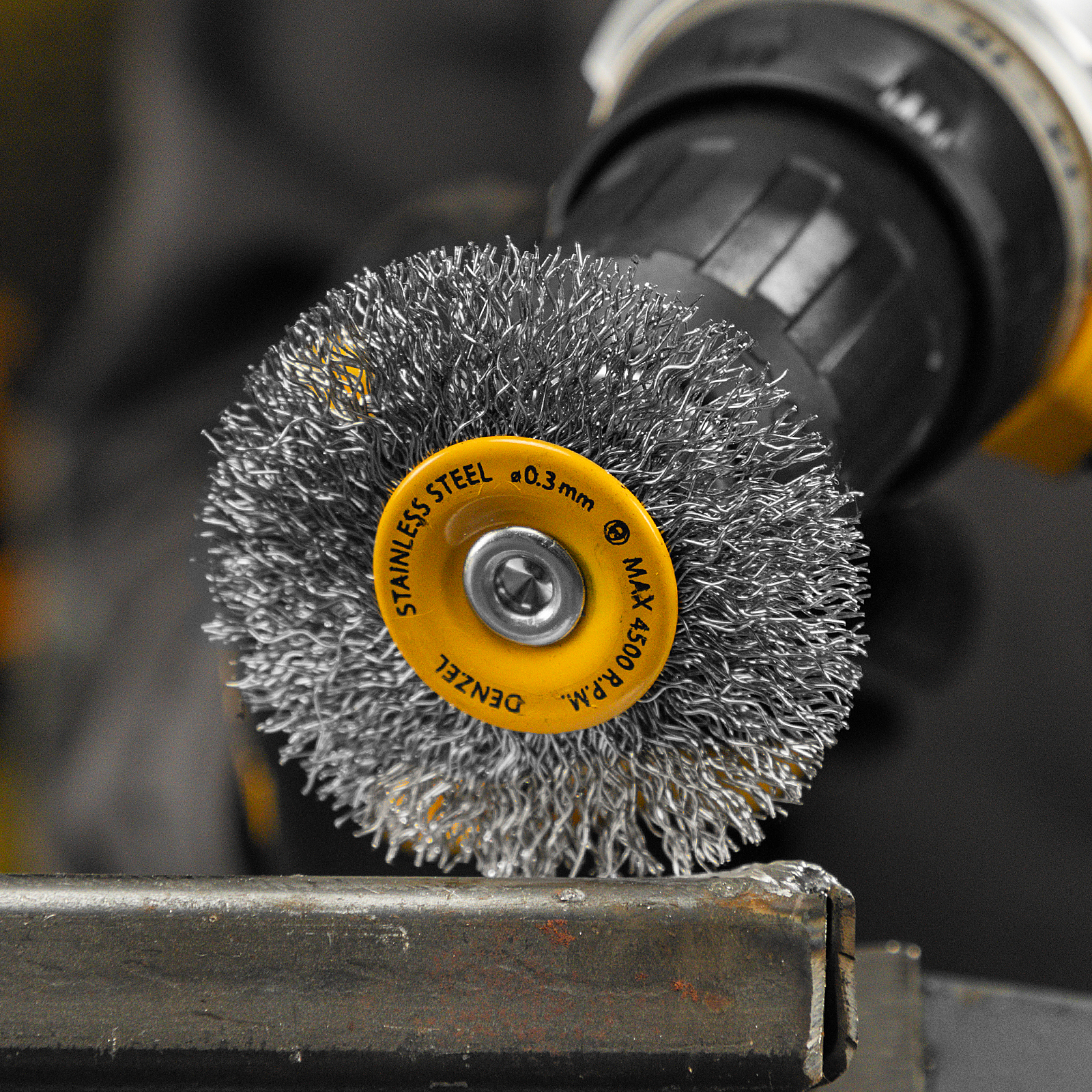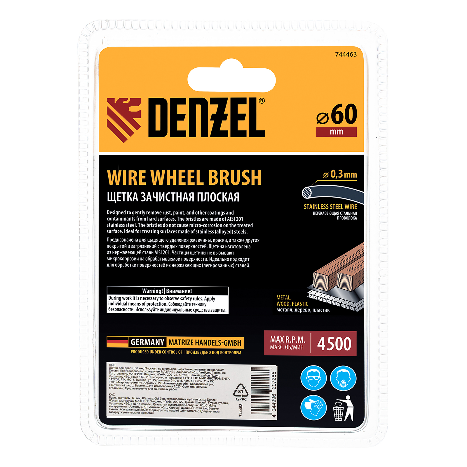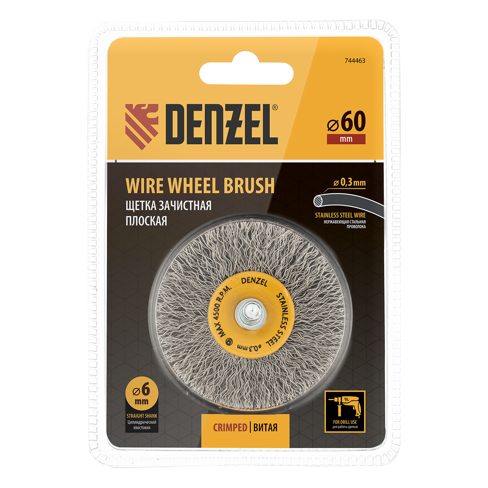 Щетка для дрели, 60 мм, Плоская, со шпилькой, нержавеющая витая проволока Denzel в Казани