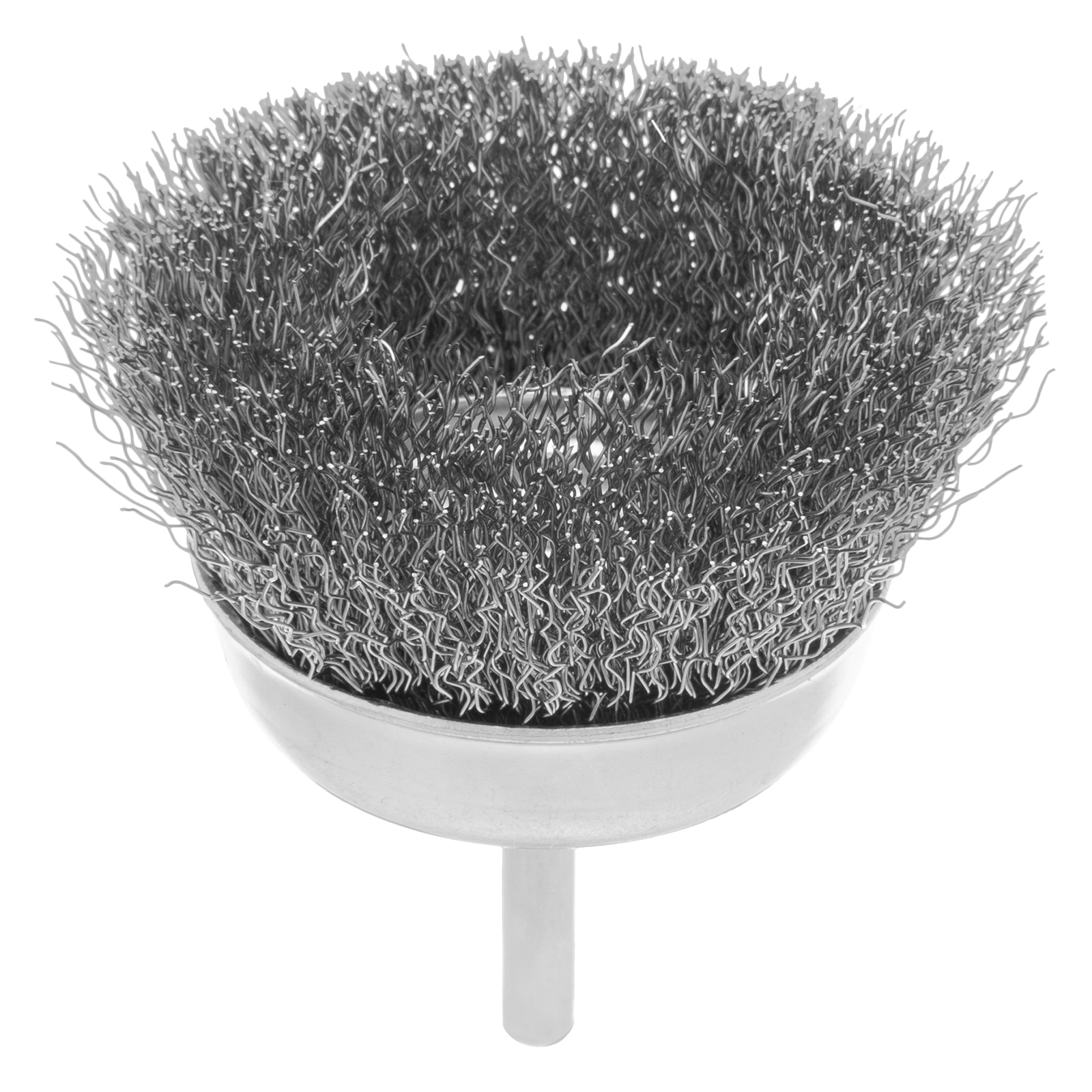 - Высокая производительность — щетка имеет форму чашки, что увеличивает площадь прилегания щетины к обрабатываемой поверхности.