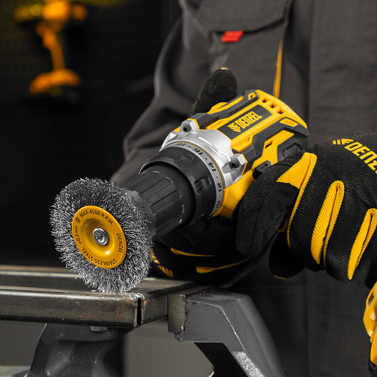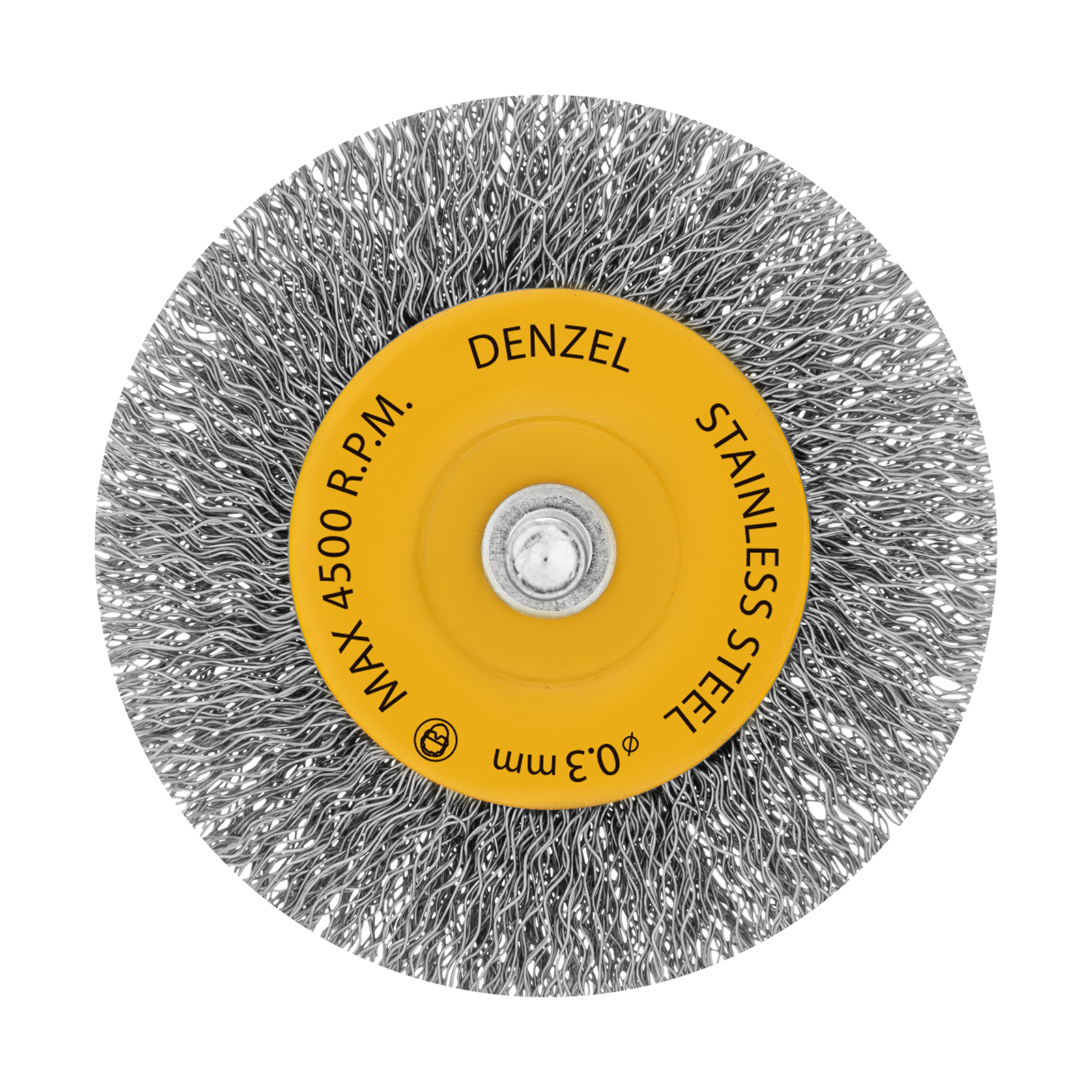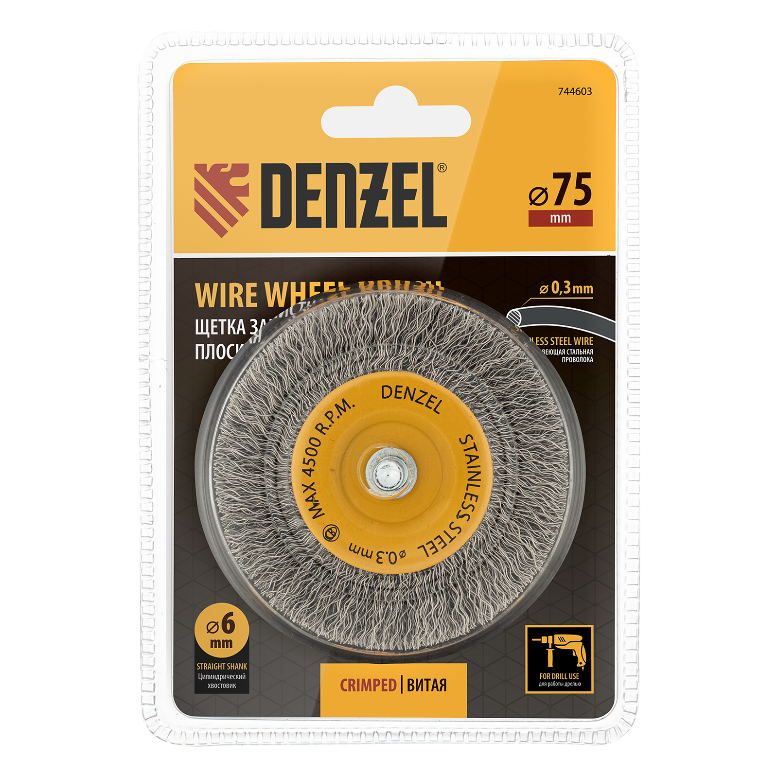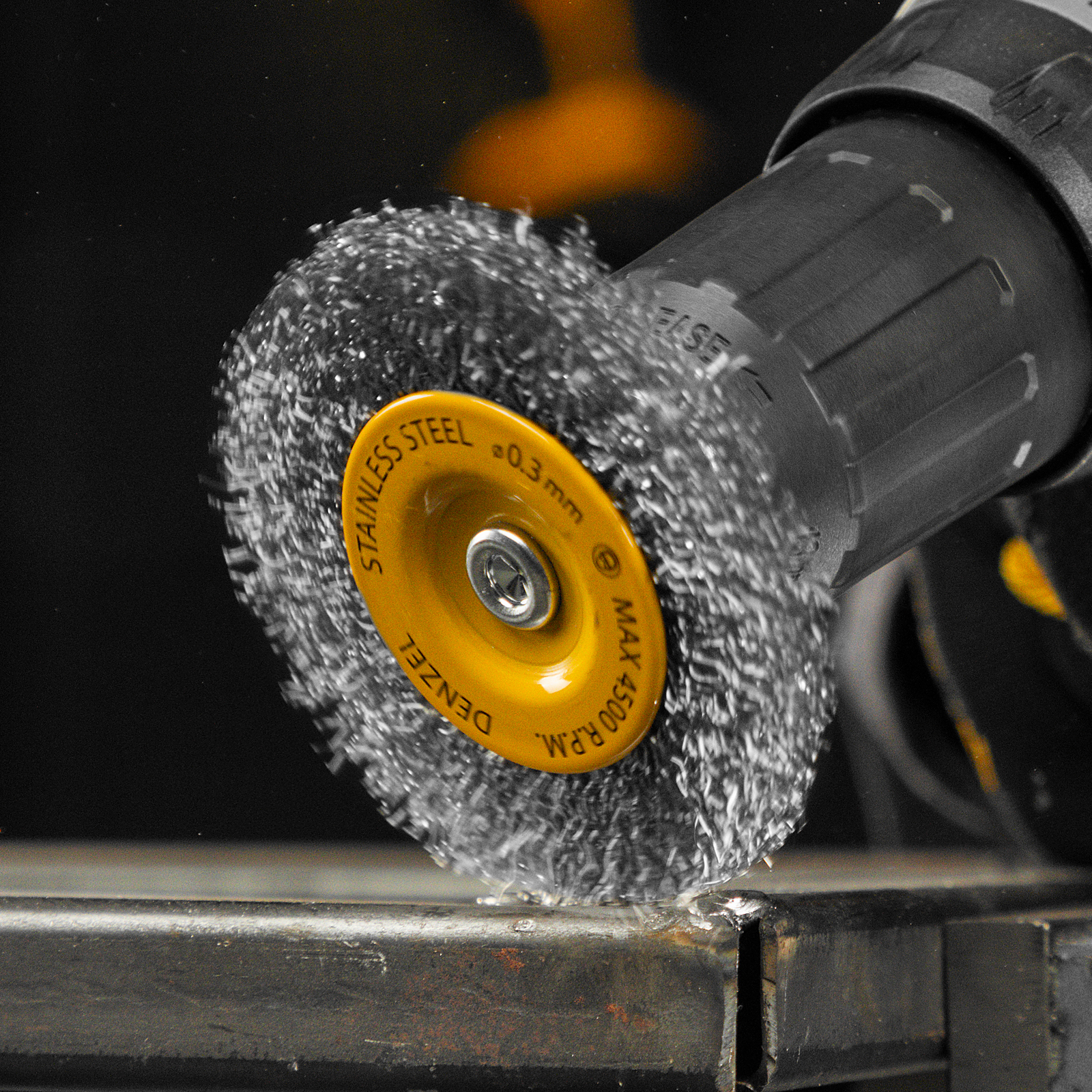 Щетка для дрели, 75 мм, Плоская, со шпилькой, нержавеющая витая проволока Denzel в Казани