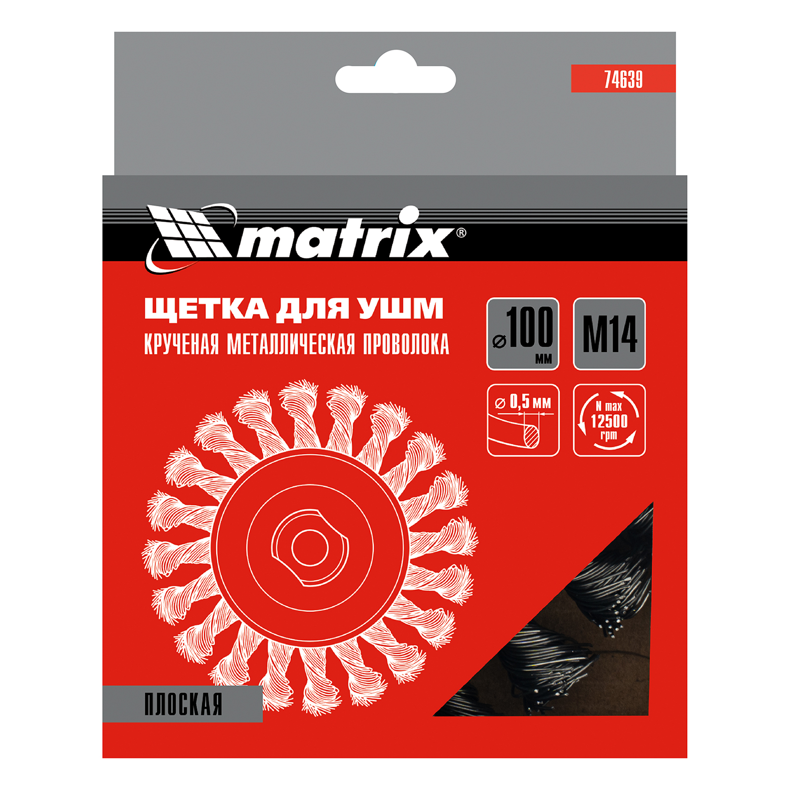 Щетка для УШМ 100 мм, М14, плоская, крученая проволока 0.5 мм Matrix