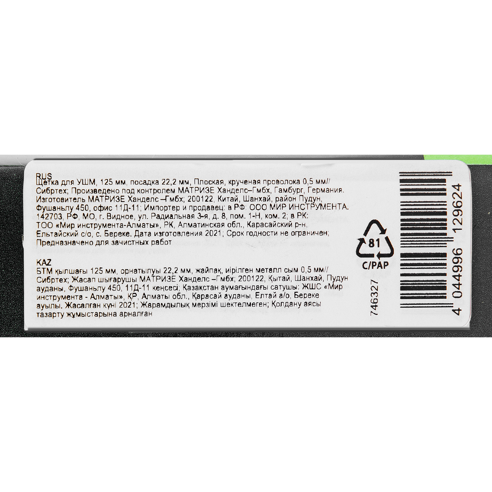 Щетка для УШМ 125 мм, посадка 22.2 мм, плоская, крученая металлическая проволока Сибртех в Казани