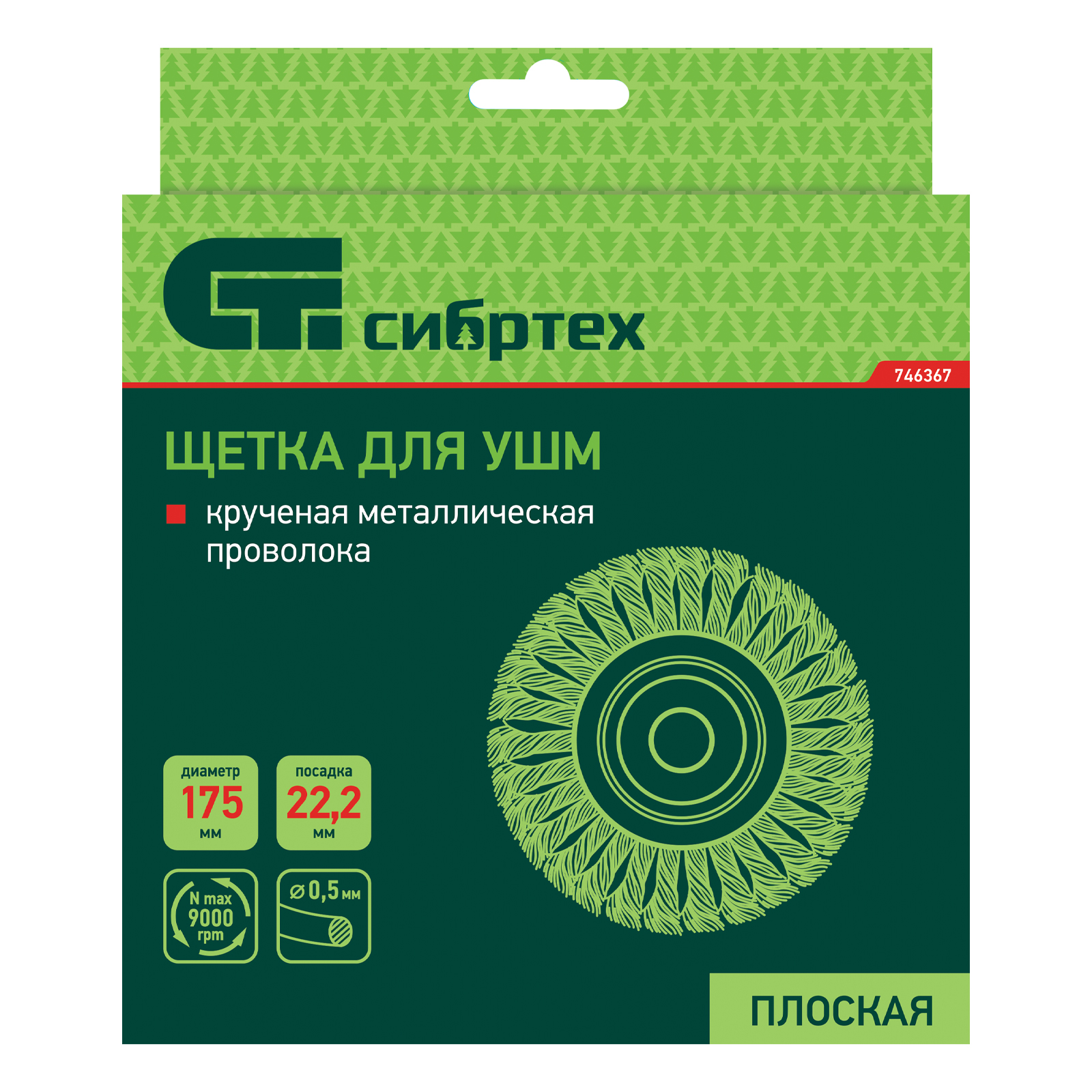 Щетка для УШМ 175 мм, посадка 22.2 мм, плоская, крученая металлическая проволока Сибртех в Казани