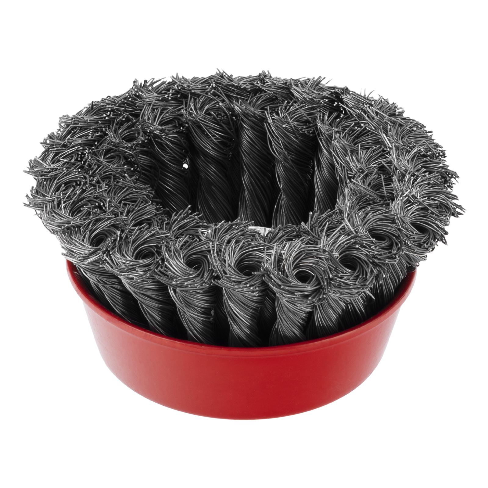 Двухрядная щетка Matrix «Чашка» 74677 диаметром 100 мм, с щетиной из крученой проволоки толщиной 0,35 мм, устанавливается на вал углошлифовальной машины с помощью гайки М14. Рекомендованная максимальная скорость вращения — до 8500 об/мин. Оснастка оптимальна для грубой (черновой) обработки: снятия старого слоя лакокрасочного покрытия и ржавчины, удаления загрязнений, зачистки сварных швов. Эффективно справляется с зачисткой больших поверхностей, подходит для выполнения работ повышенной сложности.