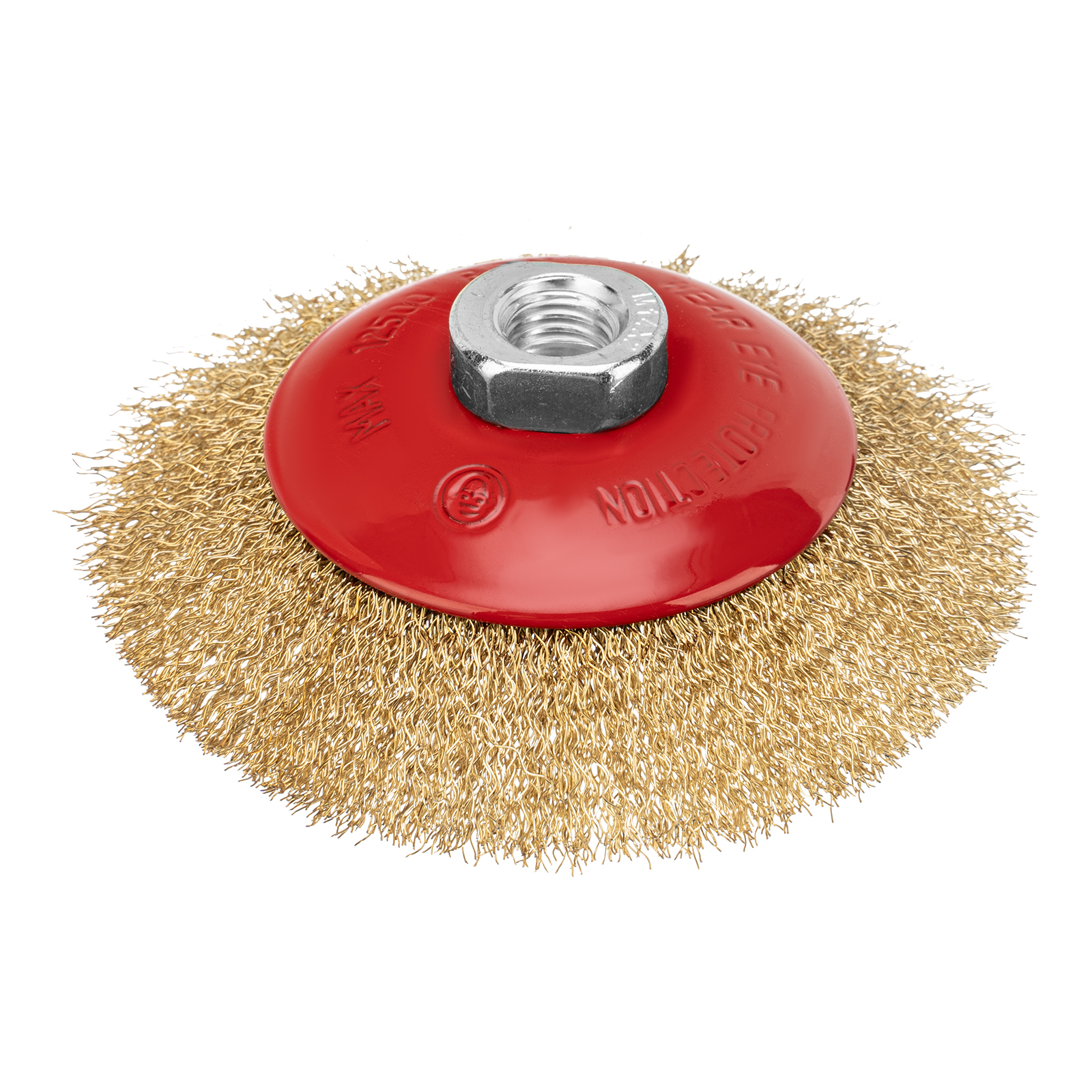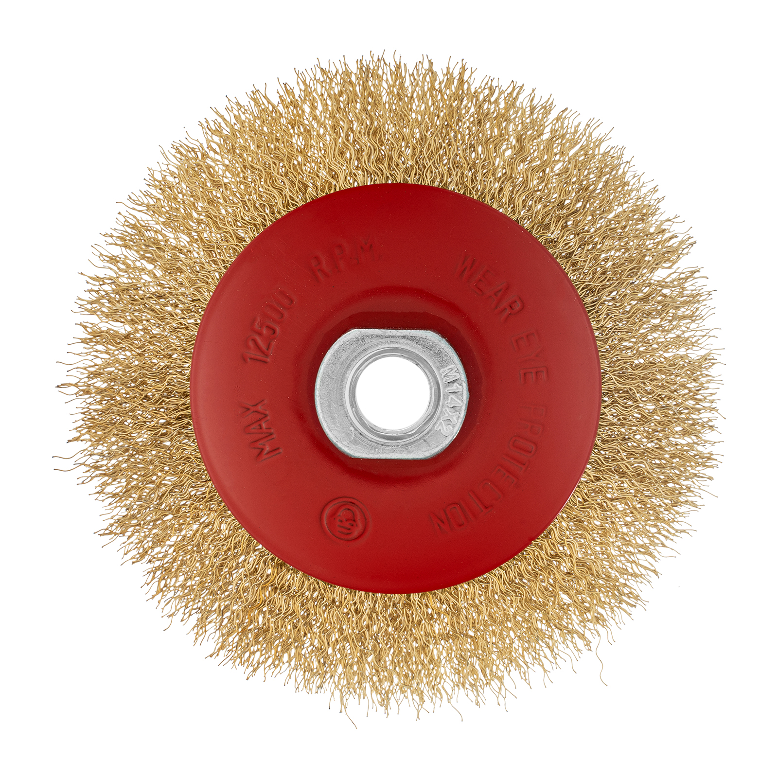 Щетка Matrix «тарелка» 74612 диаметром 115 мм, с щетиной из латунированной витой проволокой и гайкой М14,— насадка для УШМ, использующаяся для удаления с поверхностей ржавчины и загрязнений, старого слоя ЛКМ. Рекомендованная скорость вращения — не более 12500 об/мин. Щетка является универсальным инструментом, позволяющим обрабатывать как большие плоские поверхности, так и углы.