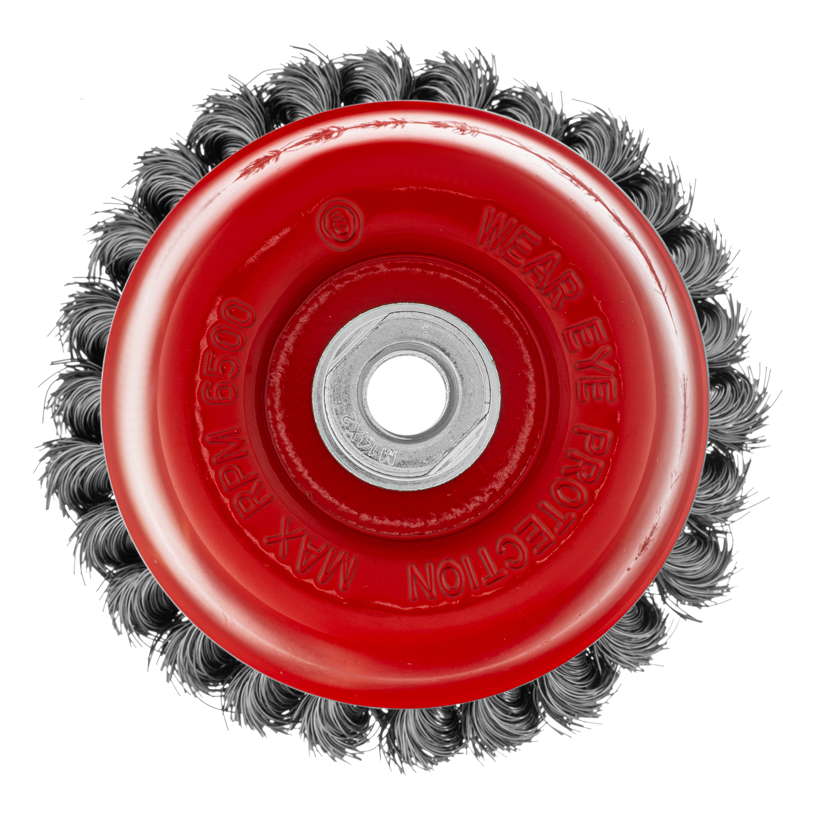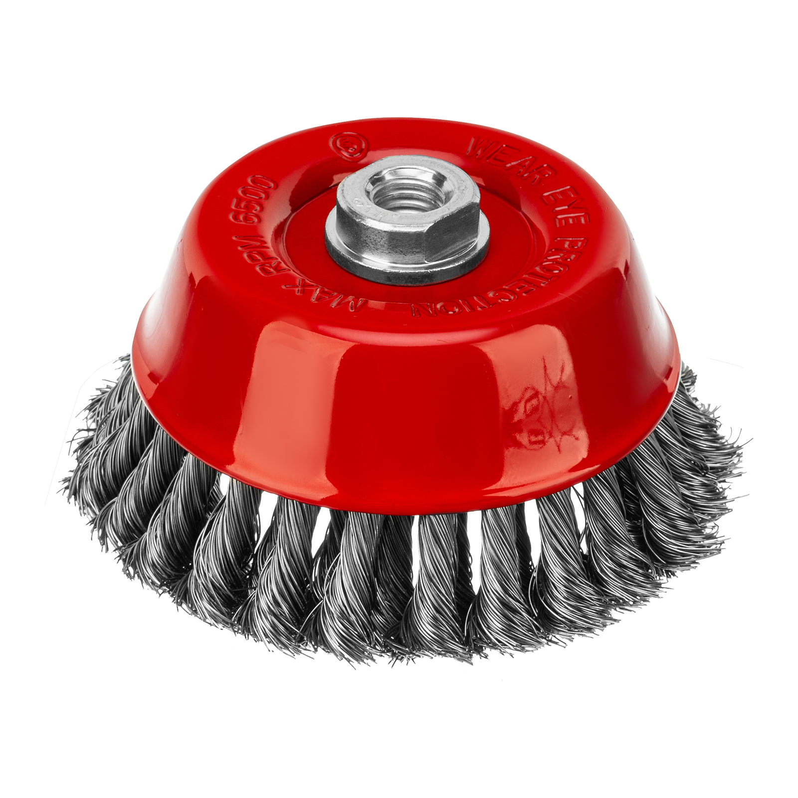 Двухрядная щетка Matrix «Чашка» 74678 диаметром 125 мм, с щетиной из крученой проволоки толщиной 0,35 мм, устанавливается на вал углошлифовальной машины с помощью гайки М14. Рекомендованная максимальная скорость вращения — до 6500 об/мин. Оснастка оптимальна для грубой (черновой) обработки: снятия старого слоя лакокрасочного покрытия и ржавчины, удаления загрязнений, зачистки сварных швов. Эффективно справляется с зачисткой больших поверхностей, подходит для выполнения работ повышенной сложности.