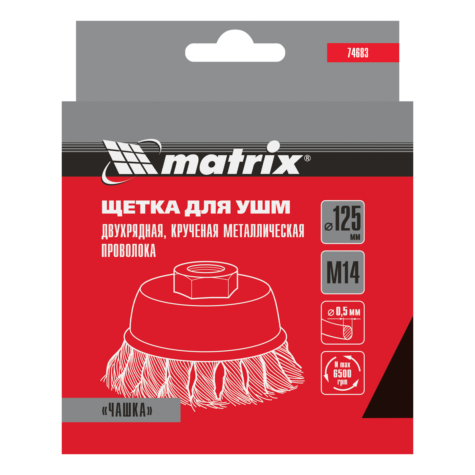 Щетка для УШМ, 125 мм, М14, "чашка", двухрядная, крученая проволока 0.5 мм Matrix в Казани