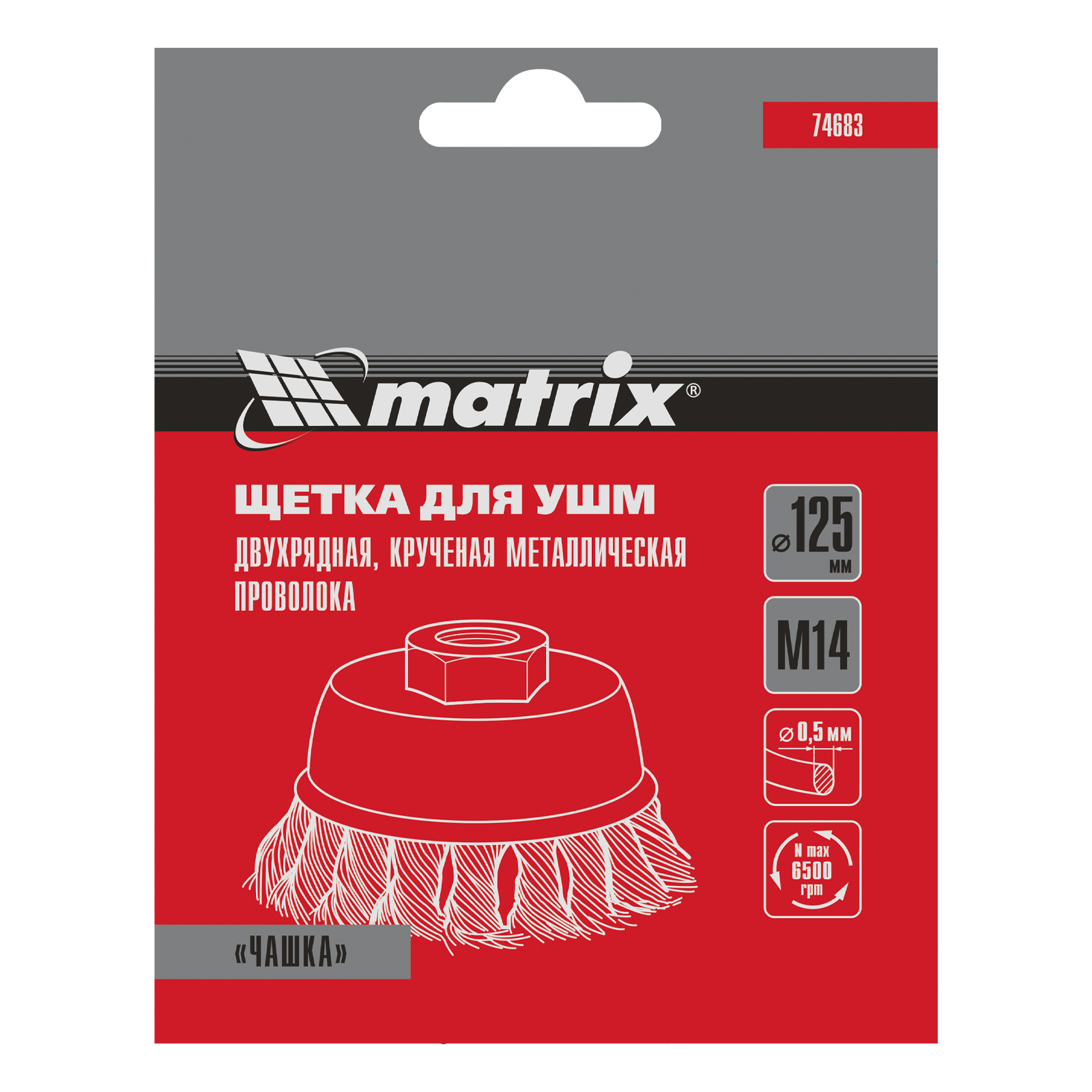 Двухрядная щетка Matrix «Чашка» 74683 диаметром 125 мм, с щетиной из крученой проволоки толщиной 0,5 мм, устанавливается на вал углошлифовальной машины с помощью гайки М14. Рекомендованная максимальная скорость вращения — до 6500 об/мин. Оснастка оптимальна для грубой (черновой) обработки: снятия старого слоя лакокрасочного покрытия и ржавчины, удаления загрязнений, зачистки сварных швов. Эффективно справляется с зачисткой больших поверхностей, подходит для выполнения работ повышенной сложности.