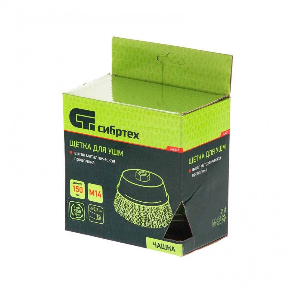 Щетка для УШМ Сибртех «чашка» 746077, М14, диаметром 150 мм, с щетиной из витой проволоки 0,3 мм, предназначена для постепенного снятия тонкого слоя материала с металлических, деревянных и пластиковых поверхностей. Удаляет ржавчину, загрязнения, а также остатки краски и других покрытий. Подходит для обработки участков значительной площади. Щетку устанавливают на вал углошлифовальной машины (УШМ), рекомендуемая максимальная скорость вращения 6500 об/мин. Работать с оснасткой следует в спецодежде.