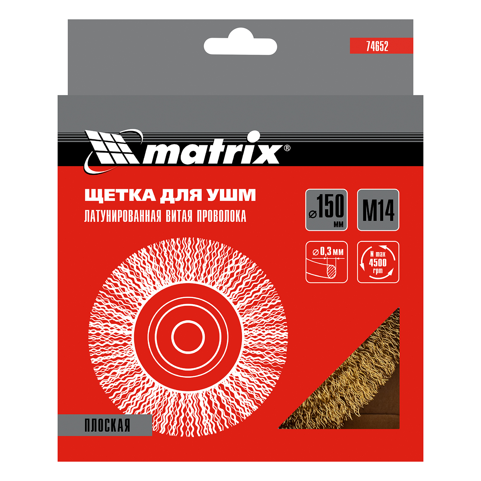 Щетка для УШМ, 150 мм, М14, плоская, латунированная витая проволока Matrix в Казани