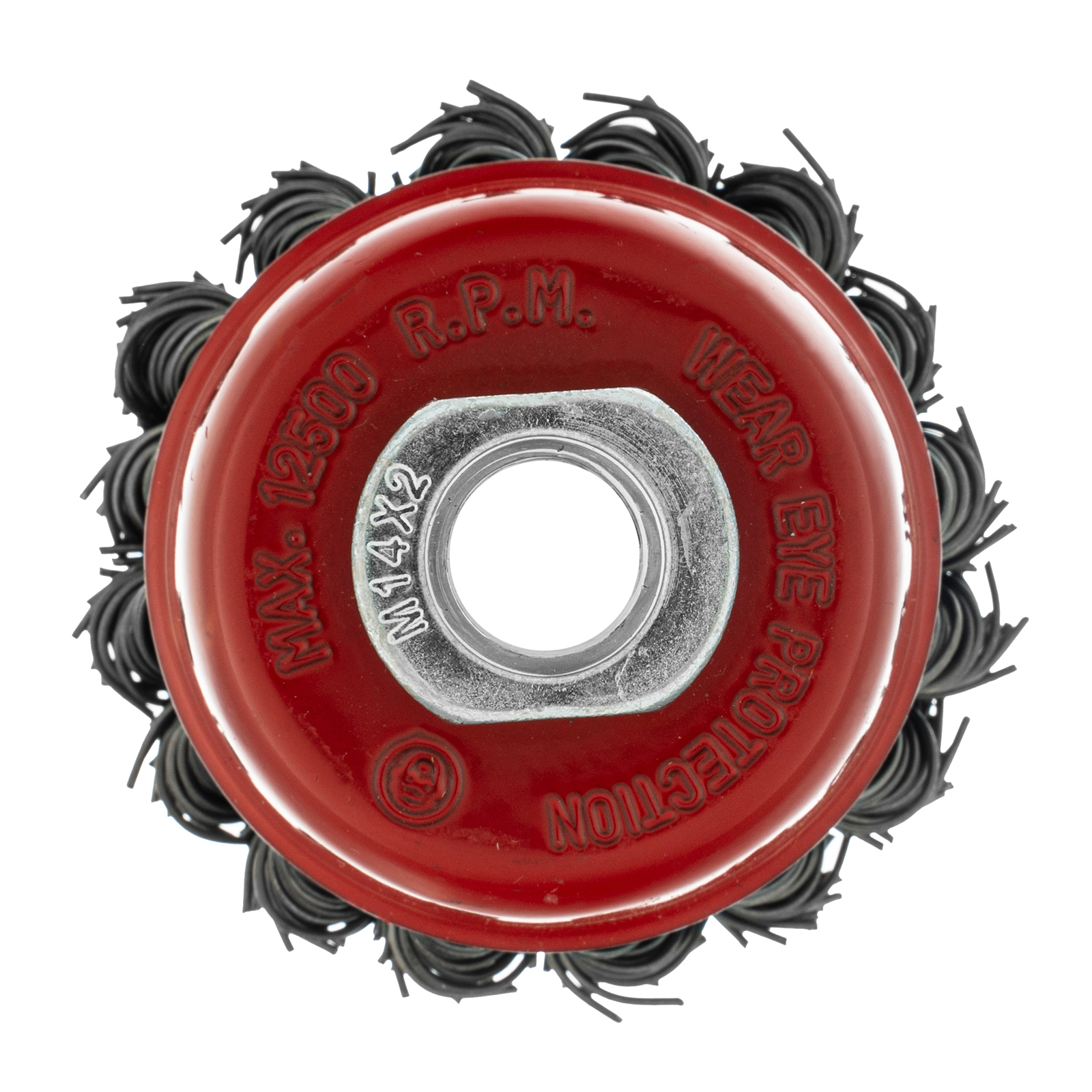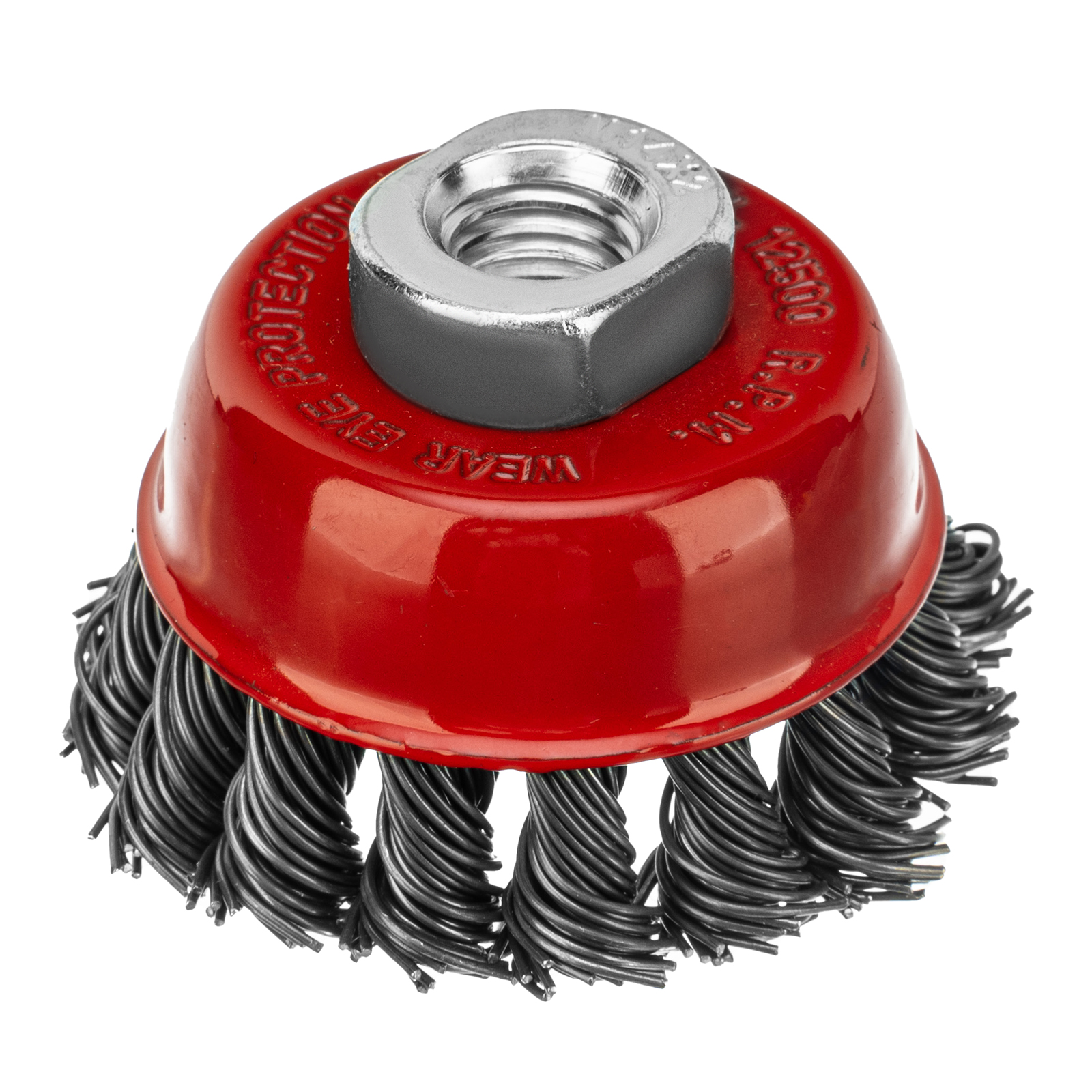 Щетка Matrix «Чашка» 74621 диаметром 65 мм, с присоединительной резьбой М14, с щетиной из крученой проволоки диаметром 0,8 мм, устанавливается на УШМ, поддерживающую работу со скоростью 12500 об/мин. Щетина предназначена для грубой (черновой) обработки поверхностей, более агрессивной по сравнению с щетиной 0,5 мм. Изделие подходит для удаления загрязнений, снятия толстого слоя ржавчины, ЛКМ, зачистки сварных швов.