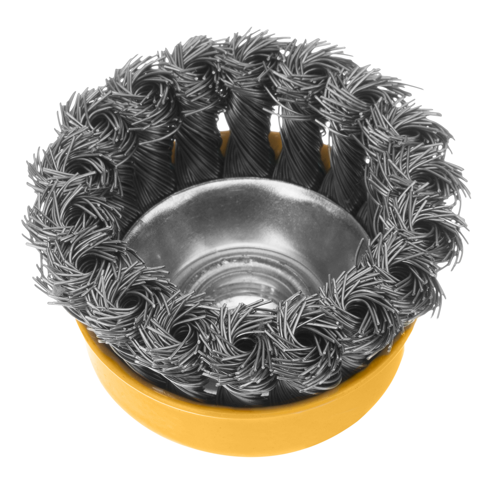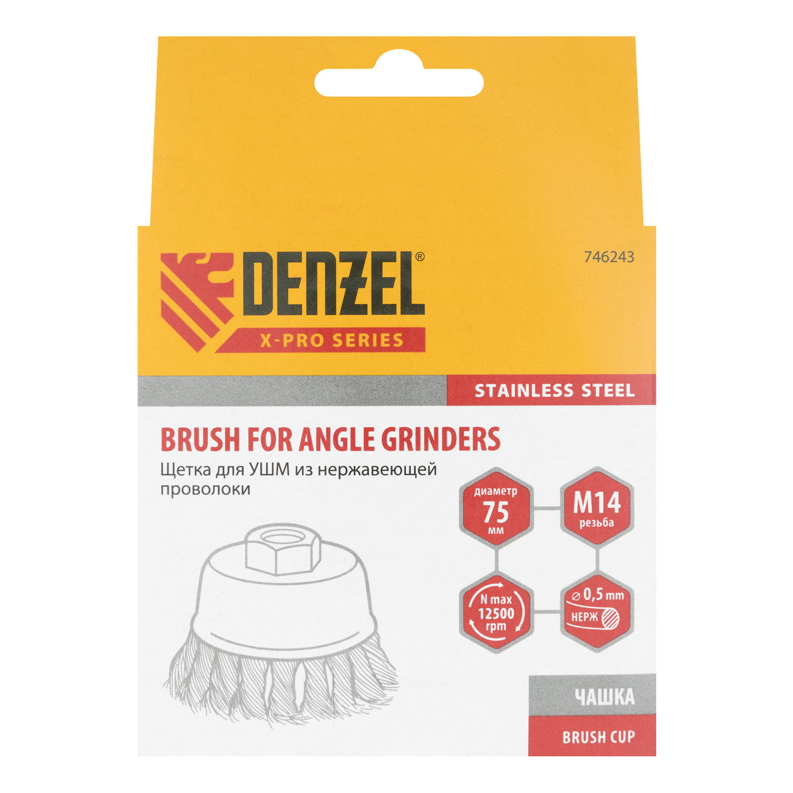 Щетка для УШМ, 75 мм, "Чашка", крученая нержавеющая проволока 0.5 мм, М14 Denzel в Казани
