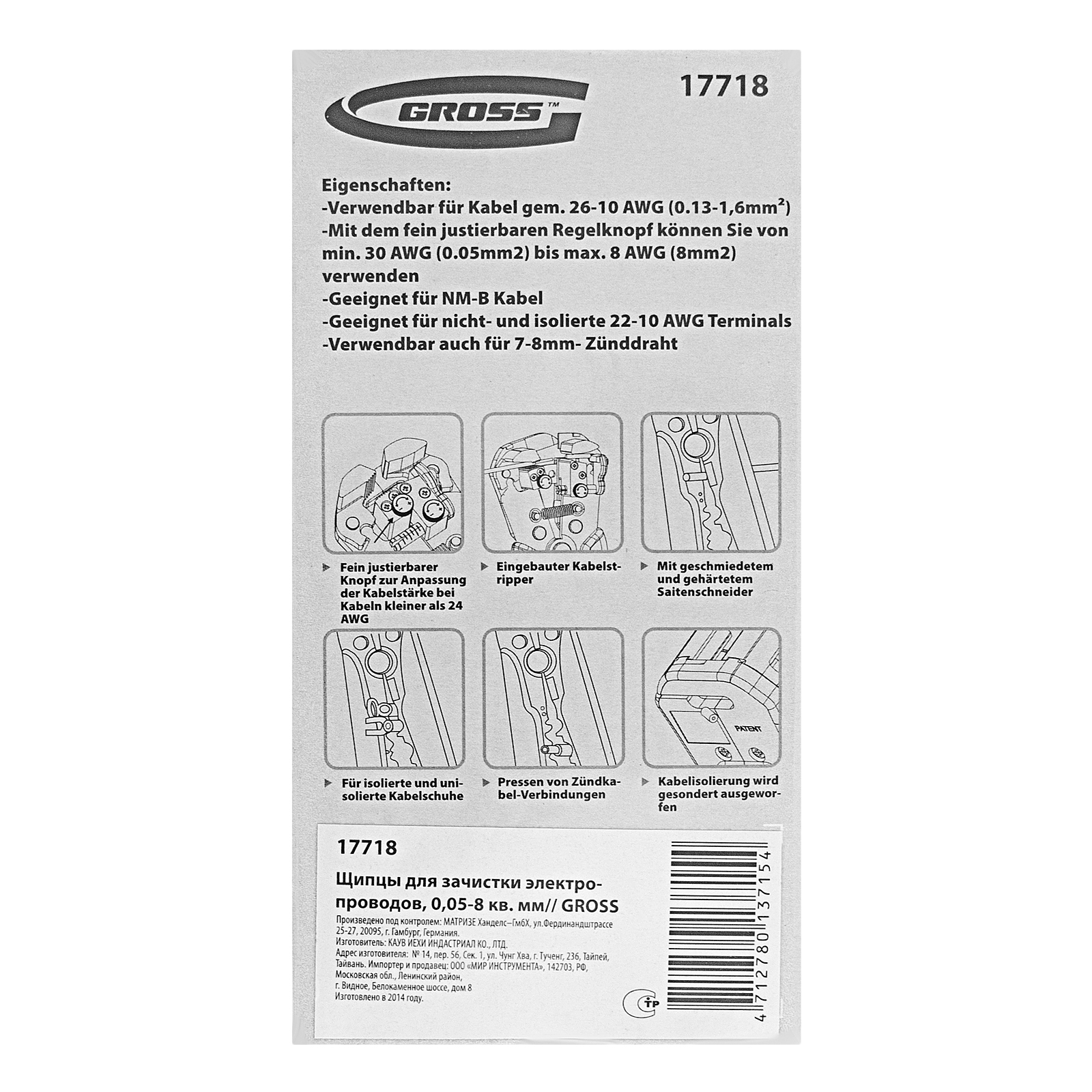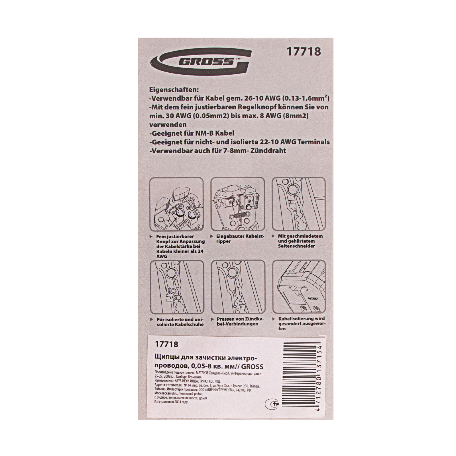 Щипцы для зачистки электропроводов, 0.05-8 кв.мм Gross